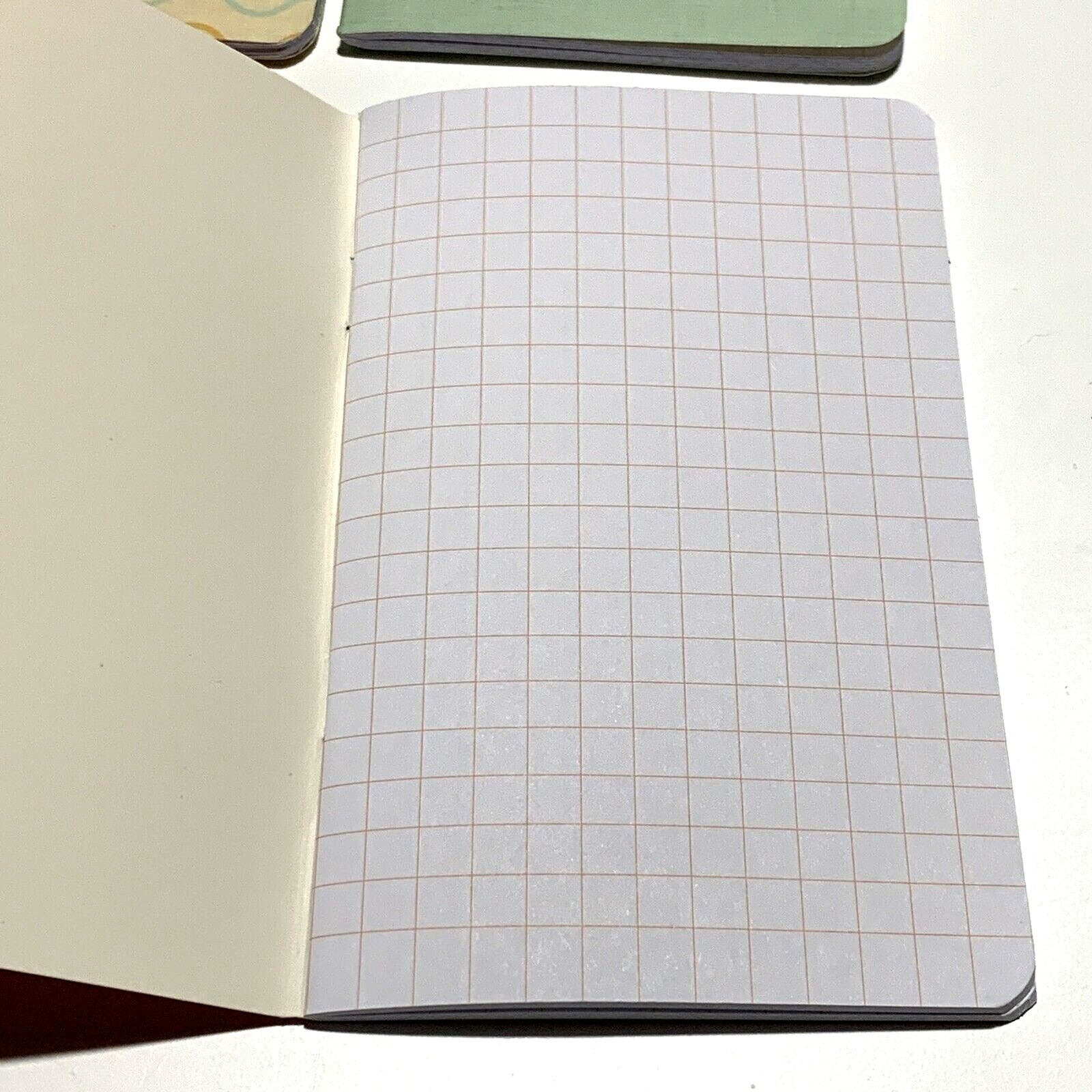 Set of 3 Mini Notebooks Measures 3.5 x 5.5 36 pages in each notebook Grid paper Perfect size to keep in your purse / handbag