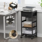 Printer Stand with Small Storage Drawer, All in One Under Desk Mobile Printer Table and Desktop with Storage Shelves, 3 Tiers Industrial Rolling Printer Cart with Wheels for Home Office, Black 【3-Tier Small Printer Table】Modern side table spacious desktop can accommodate printers of various sizes, providing more storage space in your study and office! (Size:14.96"D x 11.02 "W x 27.55 "H) You can keep books, folders, printing paper, etc. on the open storage shelf. And the drawer stores staplers, pens and other small office supplies. This desk side printer table with storage function keeps your office supplies tidy and can improve work efficiency 【Sturdy & Stable】The small printer stand made with drawer is made of high-quality metal and upgraded fabric drawers to ensure stability and durability, it won't tilt easily. Its quality material ensures long-term use 【Easy to Move】Four 360° swivel casters (two with brakes) enable easy movement and secure locking of the home rolling printer cart. The wheels will not make noise or scratch the floor when moving. Four extra adjustable feet are provided for installation as required 【Upgraded Adjustable Shelf】The small printer desk holder have an adjustable shelf,You can adjust the height of the board to store different height products.The small nightstand also blends the advantages of private and open storage/display to suit your place 【Multiple USE Options】The 3-Tiers printer stand with storage can be used as an under desk printer stand in a home office, bedside table, sofa side table, nightstand, end table, storage shelf,living room,bedroom, etc. It's a great item for organizing. Its simple style suits any decor and remains timeless 【Easy Assembly & Great Service】We provide a clear assembly manual. Accessories are digitally - tagged for simple setup.You can find an assembly video on the product page for additional guidance. Please feel free to reach out to us for any problems, our efficient customer service team will answer your questions within 24 hours