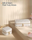 【STYLE REDEFINED】The ANAH Collection—your ultimate jewelry storage solution—features a sleek, soft PU surface with intricate quilted stitching and unique pyramid-styled hardware, elevating your pieces and making a one-of-a-kind statement 【COMPACT AND TRAVEL-READY】Travel in style with our portable jewelry box, a compact 4.1"D x 8"W x 2.4"H size that effortlessly fits into your bag or suitcase. Complete with an independent mirror for quick makeup checks and smooth zippers for easy access 【SECTIONAL STORAGE】With adjustable dividers, ring slots, a dedicated necklace section, and 2 removable earring boards, this small jewelry case ensures everything arrives as nicely as you packed it—no tangles, knots, or scuffs, even during long journeys 【ALL-AROUND PROTECTION】Designed with a sturdy MDF frame and a water- and wear-resistant surface, this jewelry case maintains its shape even when compressed in luggage. Lined with soft velvet, it protects your jewelry from scratches 【GIFT OF ELEGANCE】Delight your loved ones with this exquisite travel jewelry box—a true symbol of refined taste. Perfect for keeping their jewelry safe while on the go. And why not spoil yourself with a touch of luxury as well?