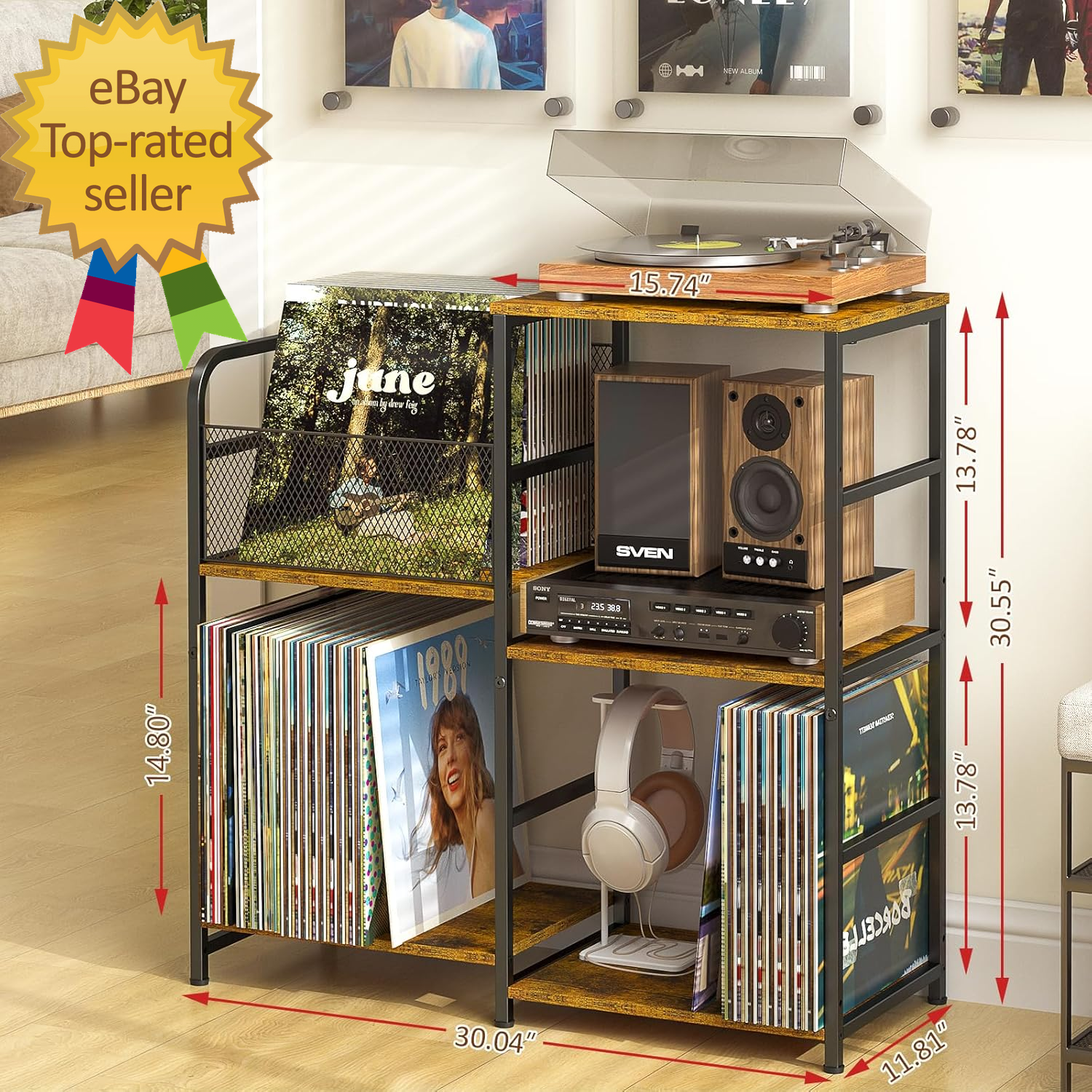 Store New Arrivals Add to Favorite View Feedback Contact Record Player Stand Turntable Stand with Vinyl Storage Holds up to 300+ Albums Description 【Two installation options Available】Our storage rack offers two different installation options, allowing you to install it freely on either side according to your needs and preferences. You can freely choose the 2 tier shelf mount on the left or right side. The retro yet stylish design ensures that it will complement your furniture style nicely. 【Large Capacity】This record player table has two sides for Vinyl Record organizing and displaying, one side has two tiers, while the other side has three tiers. The tabletop's high load capacity of up to 110lb means you can confidently place heavy items on it without worrying about stability. It's a functional piece of shelf for your storage and display needs. 【Versatile Storage table】 Its width of 30.04 inches makes it ideal for use as organizer shelf in the living room. Additionally, it can serve as a small storage shelf in various rooms, such as a children bookshelf, bedside table, paper organizer, bookcase or end table, catering to all your diverse storage needs. 【Sturdy and Durable】The combination of medium density fiberboard and a metal frame provides durability and resistance to scratching, moisture, and water damage, ensuring long-lasting use. The two side structure also contribute to its stability, making it less prone to shaking or tipping over. Our reliable and stable record stand can also make your room look more retro. 【Easy to Assemble】This freestanding record player table come with clear and detailed instructions and necessary parts, you will never get stuck with the assembly jobs for this vinyl record storage cabinet . After installation, the cabinet standing at 30.04"L x 11.81"W x 30.55 "H, and will stand sturdy without shaking. Item dimensions L x W x H 30.04 x 11.81 x 30.55 inches Assembly Required Yes Item Dimensions 30.04 x 11.81 x 30.55 inches Material Wood, Metal Required Assembly Yes ABOUT US "Prior to making any purchase from our store, it is crucial for you to acquaint yourself with who we are. My name is Muhammad Alam, I live in a very large state in the USA, "CALIFORNIA", and I am the proprietor of this store My Smartek . I have been affiliated with eBay since Dec 28, 2023. At our store, we pride ourselves on providing the most competitive prices for top-notch products. Our extensive E-store encompasses a diverse range of items, including media such as books, movies, music, and games. Additionally, we offer an array of electronic gadgets, toys, sporting apparel, clothing, tools, general home and garden items, and much more. Should you require any further information or assistance, please feel free to contact me. We are dedicated to ensuring your satisfaction and look forward to serving you with the best quality products and customer service." SHIPPING We are always working hard to ensure your package arrives as soon as possible. Please understand that some factors like weather, high postal traffic, and the performance of shipping companies are outside of our control. We offer free shipping to the lower 48 states and ship within 2 business days of payment, usually sooner. We do not accept P.O. Boxes. Please provide a physical address. For shipping outside of the continental USA, we only use eBay's Global Shipping Program. The item is shipped to KY and then sent to the rest of the world. International customers are responsible for all duties and taxes. Continue to 'check out' to calculate costs for shipping the item to your country. Messages regarding eBay's Global Shipping Program MUST be directed at eBay EXCLUSIVELY. RETURNS We do not return items, but we will only consider a return if the item is received broken or if the wrong size is sent to you. Otherwise, we will not accept returns. FEEDBACK OF OUT ITEM "After purchasing our item, once you have received it and are satisfied, we kindly request you to leave positive feedback. This will help others, like your friends, to learn about the item's quality and your experience. Thank you for choosing to buy this item from our store!"