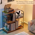 Record Player Stand, Turntable Stand with Vinyl Storage Holds up to 300+ Albums, Storage Cabinet for Vinyl Records, Record Player Table for Living Room Product Details Number of Levels: 3 Manufacturer: ThreeHio Product Dimensions: 30.04 x 11.81 x 30.55 inches Item Weight: 17.13 pounds Country of Origin: China Batteries required: No Included Components: Hardware Material: Wood, Metal Brand: ThreeHio Item Weight: 7.79 Kilograms Item dimensions L x W x H: 30.04 x 11.81 x 30.55 inches Assembly Required: Yes 【Two installation options Available】Our storage rack offers two different installation options, allowing you to install it freely on either side according to your needs and preferences. You can freely choose the 2 tier shelf mount on the left or right side. The retro yet stylish design ensures that it will complement your furniture style nicely. 【Large Capacity】This record player table has two sides for Vinyl Record organizing and displaying, one side has two tiers, while the other side has three tiers. The tabletop's high load capacity of up to 110lb means you can confidently place heavy items on it without worrying about stability. It's a functional piece of shelf for your storage and display needs. 【Versatile Storage table】 Its width of 30.04 inches makes it ideal for use as organizer shelf in the living room. Additionally, it can serve as a small storage shelf in various rooms, such as a children bookshelf, bedside table, paper organizer, bookcase or end table, catering to all your diverse storage needs. 【Sturdy and Durable】The combination of medium density fiberboard and a metal frame provides durability and resistance to scratching, moisture, and water damage, ensuring long-lasting use. The two side structure also contribute to its stability, making it less prone to shaking or tipping over. Our reliable and stable record stand can also make your room look more retro. 【Easy to Assemble】This freestanding record player table come with clear and detailed instructions and necessary parts, you will never get stuck with the assembly jobs for this vinyl record storage cabinet . After installation, the cabinet standing at 30.04"L x 11.81"W x 30.55 "H, and will stand sturdy without shaking.
