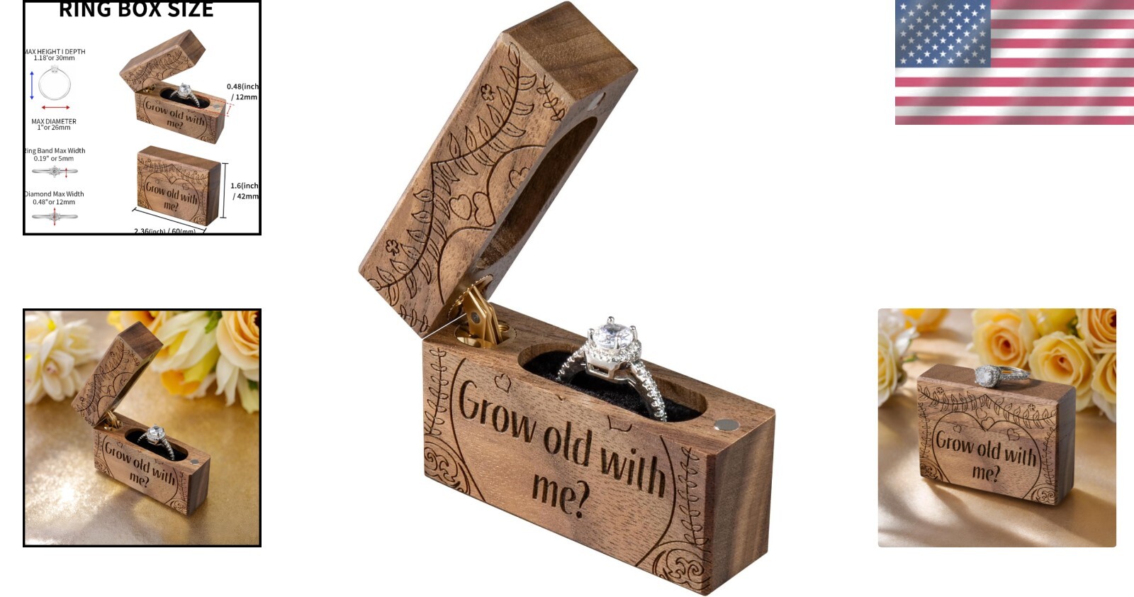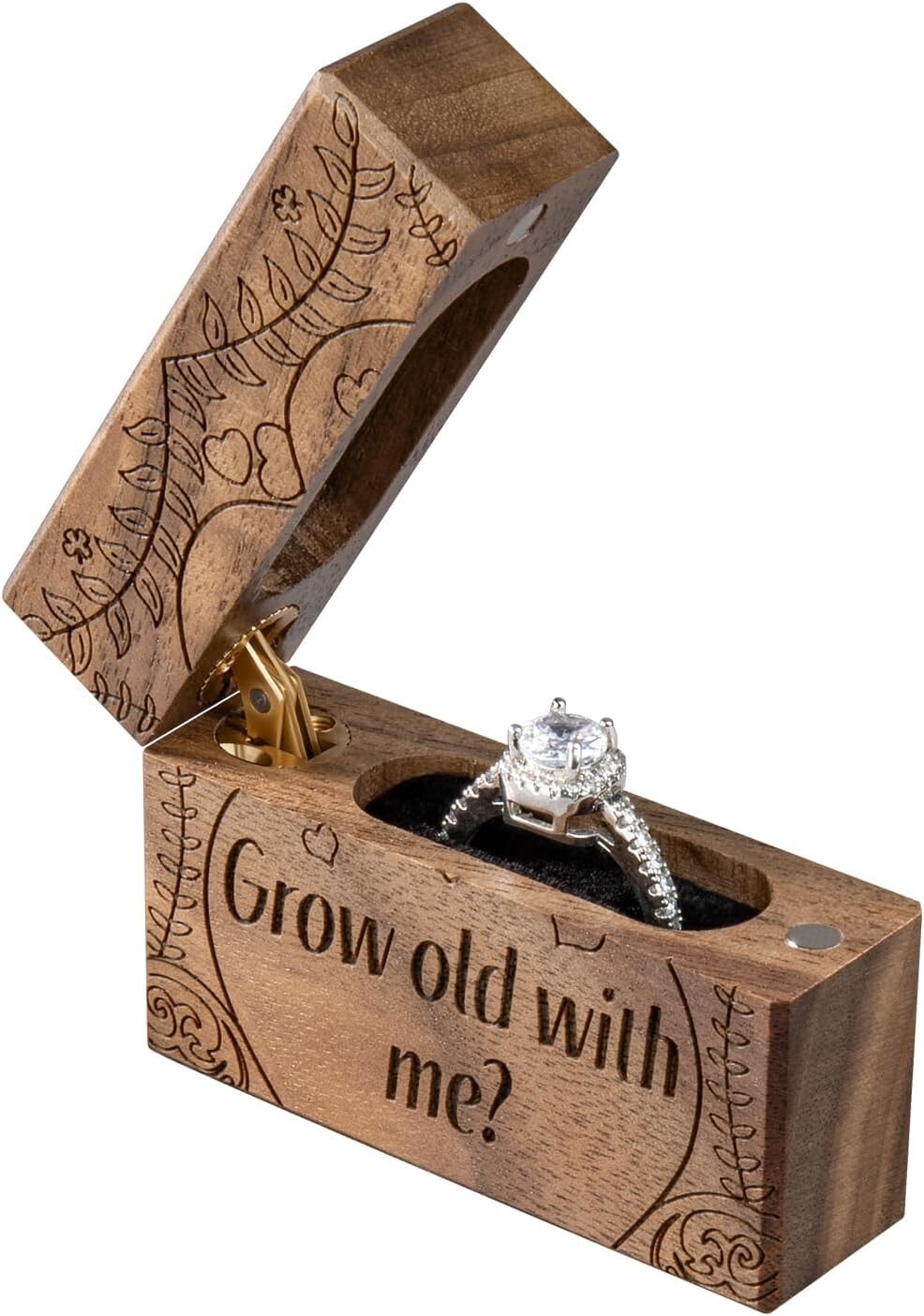 Compact Velvet-Lined Engagement Ring Box - Grow Old With Me, Perfect Gift < class="slides"> ‹ › ‹ › ‹ › ‹ › ‹ › ‹ › ‹ › ‹ › ‹ › Compact Velvet-Lined Engagement Ring Box Grow Old With Me - Perfect Gift Elevate the moment of your proposal or engagement with our exquisitely crafted ring box designed to cherish your precious memories. Created from a single piece of walnut wood, its distinctive texture is paired with sumptuous black velvet lining to beautifully enhance the brilliance of your ring. Features: The elegant exterior is coated with a matte finish for that luxurious touch. Inside, a velvet slot securely cradles your ring, while a small magnet enclosure offers dual protection. Engraved with the touching phrase "Grow old with me?", making it an ideal surprise for your beloved. Compact size: 2.36" x 0.7" x 1.65" (L x W x H); with inner dimensions: 1.46" x 0.47" x 1.33" (L x W x H). Crafted through 9 meticulous processes ensuring the highest quality: from design to inspection. Why Choose Our Engagement Ring Box? This beautifully designed ring box adds an undeniable touch of class and thoughtfulness to your proposal. Protect your delicate engagement ring with a surprise that speaks from the heart. Its smooth walnut surface and semi-gloss finish make it not just a box, but a timeless keepsake. Specifications: Color: Black walnut Engraved: "The adventure begins" Material: Walnut Net Weight: 1.48 ounces Customer Assurance: Your satisfaction is our priority. We offer a 100% money back replacement guarantee. Should you have any concerns with your order, our dedicated customer service team is here to assist you within 24 hours. Bring Surprises to Life! Order your Compact Velvet-Lined Engagement Ring Box from Store today and make every proposal unforgettable! Shipping Free & Fast Shipping - We offer free shipping to most of the USA with a normal delivery time of 3-7 days. However, due to the current situation, additional delivery time (up to 3 weeks) may be required for some items. Alternative Carriers - We may use alternative carriers (e.g. USPS, FedEx, UPS, etc.) to ensure your package arrives safely and on time. Due to the use of multiple carriers, we are unable to provide a tracking number automatically. Handling Time - Orders are processed and shipped within 1-2 business days of receiving cleared payment. Shipping Restrictions - Shipping to Alaska, Hawaii, Puerto Rico, Guam, and other US territories may incur shipping charges or delivery restrictions. Please contact us before ordering, or your order can be refunded/cancelled. State Restrictions - There may be restrictions based on your state of purchase. For example, certain items may not be shipped to California due to state regulations. Contact for Tracking Updates - If you require tracking updates or have any concerns about the delivery of your order, please feel free to contact us, and we will be happy to assist you. Return 30-Day Hassle-Free Returns - We want you to be completely satisfied with your purchase. If you are not, you can return the item within 30 days of receiving it for a full refund or exchange. Easy Return Process - To start a return, simply contact us and we will provide you with a prepaid return shipping label and detailed instructions. Restocking Fee - There are no restocking fees for returns. However, the buyer is responsible for return shipping costs if the return is not due to a seller's error. Refund Processing Time - Refunds will be processed within 5 business days of receiving the returned item in its condition. Payment We accept all major credit cards, PayPal, and Apple Pay for your convenience. Your payment information is secure and encrypted to ensure a safe and seamless transaction. Please complete your payment within 3 days of purchase to avoid any delays in shipping. Feedback Your feedback is extremely important to us. We strive to provide the best products and customer service possible. If you are satisfied with your purchase, please take a moment to leave us a positive review. If you have any concerns or issues with your order, please contact us before leaving negative feedback. We are committed to resolving any problems and ensuring your satisfaction. Contact Us If you have any questions or concerns, please feel free to out to our customer support team. You can contact us through the eBay messaging system. We are available Monday to Friday, 9:00 am to 5:00 pm EST, and we will do our best to respond to your inquiry within 24 hours. Buy it now and enjoy a pleasant shopping experience! Unit Quantity: 1 Items Included: Jewelry Box,Wood ring box Suitable For: Ring Material: Velvet,Walnut Theme: Box Features: Engraved,Magnetic Closure Type: Jewelry Box Color: Black walnut Lining Material: Velvet Shape: Square Department: Unisex Adults Capacity: 1 Piece Item Depth: 0.7 in Unit Type: oz