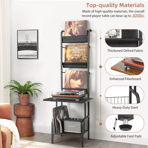Return Policy Fast Delivery Trusted seller Record Player Stand with Vinyl Storage, Record Player Table with Vinyl Record Storage up to 200 Albums, Turntable Stand with Record Holder Vinyl Display Shelf, Record Player Cabinet Organizer Rack Product Description 【Extra Large Countertop】Specially enlarged the countertop for the record player, the record player stand with vinyl storage can hold almost any size of record players. You can jam out to Harry Styles full blast without worry of your turntable sliding off. 【Vertical Design, No Need Crouch】Overall Dimension: 13.8" L x 11.8"W x 56.7" H. Using the vertical space not only effectively reduces the floor area, but also makes it much more convenient for you to get the record without crouching down. 【Large-Capacity Turntable Stand】The record player table features 3-layer vinyl display rack and 2 large record shelves, providing ample storage space for your record players, records, speakers, audio equipment, books, magazines and more. The record holder can hold up to 200 records. 【Easy to Find Out Records】3-layer vinyl record storage holder keep everything organized so you can separate your stack by genre or however you want. The record display organization makes it easier to find out records as well as decorates the record table with the stunning record covers. 【Sturdy and Durable】Made of thickened metal frame, high quality easy cleaning wooden board and high-grade oxford fabric, the record player cabinet for bedroom and living room ensures a longer service life without any wobbling or shaking. Load capacity for overall item is 300lbs. 【Assemble with Ease】The record player stand with storage comes with detailed instruction and necessary tools for assembly. All hardware has been labeled. You can easily assemble it in 20-30 minutes without other's help. 【100% Satisfactory Service】Your satisfaction is our top priority. We are committed to presenting the best quality materials and satisfaction services to our customers. If you have any issue with the record player table, feel free to contact us at any time. Shipping Returns Payment Shipping Shipping is FREE to all addresses other than APO/PO boxes in the lower 48 states. All our stock ships from US-based warehouses. Shipped via USPS or UPS (depending on location and package weight) Unless stated otherwise, all orders will ship within 24-72 hours of your payment being processed. Check our feedback to see the great reviews of FAST shipping we offer. Returns Seller does not accept returns Payment We currently accept payment via eBay managed payments only. Once payment is cleared, we will dispatch your shipment within 1-3 business days. Please refer to the "Shipping" tab for more information regarding shipping speed to your destination.
