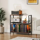 MULTIPLE SCENE APPLICATION: This vintage record player stand is perfect for living rooms, studies, bedrooms, and more. It can also function as a side table, bookshelf, or storage rack. In addition to holding vinyl records, it can a variety of household items LARGER STORAGE SPACE: This record player stand can hold up to 300 vinyl records. The bottom section is designed for record storage, while the top and middle sections can accommodate speakers, audio equipment, and other small items. The three-tier design helps to better organize your vinyl collection and media essentials while also providing a spot for your record player. It's a perfect fit for any space in your home or office DURABLE AND STURDY: The record stand is made from high-quality particleboard, featuring eco-friendly and waterproof properties. Supported by robust iron pipes, it ensures long-lasting durability and resistance to deformation. With its vintage brown color, it combines rustic elements with modern design, making it suitable for various home decor styles PRODUCT DIMENSIONS: 31.1 inches (L) x 11.81 inches (W) x 29.53 inches (H). The upper tier displays the front covers of your records for easy viewing and retrieval. The lower tier includes three metal dividers for organized categorization of your vinyl collection, making it the perfect choice for your needs EASY TO ASSEMBLE: This vinyl record stand comes with detailed assembly instructions. Each part is clearly numbered, making it easy for you to the manual and assemble it effortlessly. If you encounter any issues during installation or use, please feel free to us. We are here to provide you with support and solutions