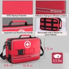 【Portable and Functional First Aid Kits】Multiple carrying methods -with removable compatible carrying straps, secure closure buckles and reflective stripe. There are handles on the top and side of the first aid kit, which can be mounted on luggage, cars, trucks, etc. It's very convenient for you to carry out 【Comprehensive First Aid Supplies】This is a large premium first aid kit. Contains basic first aid supplies for treating little injuries, cuts and burns. Also have Israeli bandages, Splints, Emergency sleeping bag, shears, CPR masks, etc. Helps care for medical or emergency needs at camping, hiking, or during hurricanes, earthquakes and tornadoes 【Labelled, Compartments, Well Organized 】Colorful-coded labelled compartments system enables you to quickly identify first aid contents and explains the typical use for each item. Well organized make it easy to find what you need in the case of an emergency 【Removable MOLLE System】The molle-compatible system, you can carry this first aid kit on your tactical backpack or your car. Also can trap used to mount to the back of a car seat and allows the bag to be unzipped and fully open with all the contents still accessible while the pouch attached to the seat.Features D-rings so it can be attached to almost any surface 【Rip Resistant and Additional Space】The trauma kit is made from high-quality rip resistant 600D Polyester, perfect for extreme adventures, robust. Additional space allows you to add customized items based on your personal need. The medical kits bag have reflective piping, will lights up in the darkness