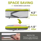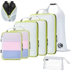 8 Set Compression Packing Cubes Mesh, Lightweight Luggage Organizer Bags with Laundry Bag &Toiletries Bag &Shoe Bag, Travel Essentials for Carry on Suitcase Sturdy YKK Zipper: Our packing cubes for carry on suitcase features YKK zips with a long drawstring design for easy access to your clothes, as well as handles so they slip seamlessly in and out of your case Mesh Top Window Panel: Luggage organizer bags made of see through mesh and sturdy ripstop nylon, grid nylon fabric provide our organizer bags for the added strength and durability, Mesh packing cubes allow you to see what's inside without having to open it and breathable to keep your clothes fresh, especially useful for dirty clothes while travelling Space Saving and Travel Light: compression packing cubes travel design with extra compress zipper to help you packaging your clothes by squeeze the air out of them, you can save more precious space in a carry-on luggage or checked bag, it's excellent space-savers to pack more items on your trip Packing Perfection in Different Size: Compressible, easy to access, and large capacity, the 8 piece travel packing bags included 2x Small, 2xMedium, 1xLarge Packing Cubes, 1xShoe Bags, 1x Clear Toiletry Bag and 1xLaundry Bag. The various size options also let you mix and match the cubes to fit whatever luggage you're bringing from weekender duffel to large checked bags Travel Essentials: Our compression packing cubes travel with you wherever you go, suitable for family vacation, business trip, hiking, camping, RV or cruise vacation, making packing a breeze. If you’re a frequent traveller, our compression packing cubes are an useful travel accessory to stay organized and maximize space in your suitcase.