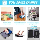 【Durable Nylon】 Made from soft and smooth feeling nylon fabric, backpack travel cubes water& wear resistant. [COMPRESSION PACKING CUBES] - Save Up to 60% Space by Compressing the travel packing organisers bags via the Exterior Compression Zippers. The compression step is: 1. Fold Your Clothes Neatly. 2. Put the Clothes in the Packing Cubes and close the normal zipper. 3. Close the compression zipper. Be careful not to get your clothes stuck in the zipper. [THREE DIFFERENT SIZES] - Our 3 set of packing cubes can basically meet your daily needs. So you can pack separately according to the size of the item. Our product pictures shows the amount of clothes that can be packed in compressed bags of different sizes, you can refer to the picture or just according to your actual situation. The description will write clearly the size of the three compressed bags. [MULTI-PURPOSE] - Our travel cubes for packing are multi-purpose. These luggage cubes organize toiletries, makeup, shaving tools and clothing. They can also separate new from worn clothing, and can be used to store seasonal items. Practical and intimate. [CONVENIENT] - Mesh top allows for breathability and visibility, so you know what's inside at just a glance. Quick grab handle makes traveling easy and zippered opening allows for maximum compression and organization. Product Description Made of high-quality nylon fabric with finished interior seams to increase durability. Great way to keep organized for family breaks, business travel, backpacking, camping, etc. Take 1 cube with you as a carry-on item to reduce weight on checked-in luggage. Three sizes can be used for your different packing purpose, make your luggage clean and tidy. The travel packing cubes can hold your towel, make up, socks and so on. Package includes: 1 X 3pcs set of packing bags Specifications: Type: Travel Packing Bags Color: Blue ,black Material: nylon Size: L: 40x30x10cm, M: 35x25x10cm, S: 30x20x4cm. Waterproof, durable & long lasting With zipper, you can open and close it easily and safely. It is very suitable for travel and outdoor activities. Feature: A portable storage bag set, suitable for trip, school, college and daily use Different size design can make your articles in orderly condition Made of good quality material, soft, waterproof and light-weight Can hold your clothes, books, towel, shoe, make up, sock and so on All bags are use zipper as closure, keep your item safe and convenient to take item out