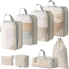 【Save Space 40-50%】: compression packing cubes with zipper, added an extra zipper to the original travel cubes, just need to neatly stack clothes and items into the bag, and then zipper up. Through testing, we found that this operation can save up to 40-50% of space. 【Durable】: These travel packing cubes set are made of durable 600D rip-stop nylon fabric that is washable and waterproof. Sturdy handle to provide heavyweight support, making it easier to carry. 【Lightweight travel accessories】- Ultra-lightweight fabric ensures that clothing fits neatly into your suitcase without adding extra weight. Ideal for situations where you want to minimize weight and save space in your suitcase. 【Breathable Mesh Design】The mesh design is great for keeping clothes breathable and ventilated, and easy to find while traveling, you don't need to rummage through your entire suitcase to find what you need. It also helps to expel excess air out, easy to compress and save more space. 【Sock Tube and Wash Bag】 - Unlike most compression cubes, we include a sock tube, a wash bag and digital bag. You no longer need to keep your socks with your other clothes, which makes organizing them much neater and more efficient. And the wash bag can let your toiletries organized orderly, and find the right items faster. 【WHAT WILL YOU GET】: Totally 8pcs a set: 1*XL 39*40cm, 1*L 30*40cm, 1*M 25*36cm, 1*S 20*30cm, 1*Drawstring bag 33*50*7cm, 1*sock tube 34*9*12cm, 1*wash bag 23*7*19cm, 1*digital bag 22*19cm 【LIFETIME WARRANTY GUARANTEE】: Still looking fortravel packing organisers, the Lanmalaterra packing cube is the perfect travel gift for men, women or the whole family. In addition, we offer a Lifetime Warranty to give you peace of mind. Don't worry if our products don't meet your expectations or if there are any problems! Contact us and we will solve it with 24 hrs. Lanmalaterra Compression Packing Cubes, Travel Packing Cubes Set of 8 Travel Packing Organisers Storage Bags Clothing Sorting Packages Travel Essentials Expandable Travel Bags for Luggage-Beige