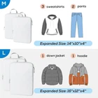 Each compression packing cube features a zippered compression system to condense your clothes and maximize your luggage space by 50%. Thus, you can bring everything you need without the extra bulk. Made with a durable 600D ripstop nylon fabric that is washable and water-resistant, these packing cubes for travel are built to withstand years of use. A must-have TRAVEL ESSENTIALS for travelers. The wide-open zipper closure makes the travel cubes much easier to pack - folding your clothes and stacking them inside the compressible packing cubes, or rolling them up. The webbing handle of each luggage cube allows you to grab and hang them easily. Our 4-set compression packing cubes for travel Include 5 compressible packing cubes in 3 different sizes. This suitcase organizer bag set fits perfectly inside all sizes and brands of luggage, making it easy to keep your luggage organized and tidy. ROOM FOR EVERYTHING: Each compression packing cube features a zippered compression system to condense your clothes and maximize your luggage space by 50%. Thus, you can bring everything you need without the extra bulk. BUILT TO LAST: Made with a durable 600D ripstop nylon fabric that is washable and water-resistant, these packing cubes for travel are built to withstand years of use. A must-have TRAVEL ESSENTIALS for travelers. SMART PACK & ACCESS: The wide-open zipper closure makes the travel cubes much easier to pack - folding your clothes and stacking them inside the compressible packing cubes, or rolling them up. The webbing handle of each luggage cube allows you to grab and hang them easily. PACK LIKE A PRO: Our 4-set compression packing cubes for travel Include 2 medium compressible packing cube and 2 large compressible packing cube. This suitcase organizer bag set fits ideally inside all sizes and brands of luggage, making it easy to keep your luggage organized and tidy. PACKAGE INCLUDES: Our 4-set compressible luggage organizer contains 1 large packing cube (16''x12''x4''), 1 medium packing cube (14''x10''x4''), and 1 small packing cube (12''x8''x4''), 1 laundry bag (16.5''x9''). It's time to say goodbye to messy luggage and hello to stress-free packing!