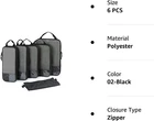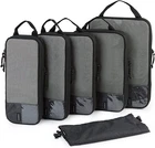 Zipper closure 6 Set Compression Packing Cubes - If you'll be preparing multiple outfit options for your travel, you no longer have to sacrifice style for luggage space when you come across BAGSMART PACKING CUBES. Large for jackets, sweaters, trousers , Medium for shirts, blouses, Small for underwear, drawstringcan be used as a laundry bag to separate your dirty/wet clothes or shoes. True Space Saving - This compression travel cubes is kind of like how a vacuum sealer works. Done by adding an extra zipper around the outside that can be zipped up to help squash clothes down and minimize the space inside. It’s remarkable how much of a difference they can make. Help travelers “Fit Double the Amount” in their suitcases. Durable Travel Essentials - We're sure you'll want to make sure you get a high quality suitcase organizer that won't break in a few months. Hundreds of experiments simulating real use scenarios have enabled us to improve the durability. And, it’s also worth noting there’s an ID tag pocket on the front of the packing organizers to help you further optimize your packing scheme. So you can remember which cube contains your favorite T-shirt. Lightweight Travel Accessories - Super light fabric ensures packing your clothes neatly in luggage without adding extra weight. Great for when you want to minimize weight as much as possible and save space within your suitcase. What We Care - Every traveler has their packing style preferences, BAGSMART provides plenty of flexibility for any type of traveler. We hopes to sell not just a commodity, but also a love. Love to travel, love the outdoors, love the journey of you. If there are any quality problems, please do not have any hesitation. for a timely and satisfactory answer! Product Description Additional Packing Cubes Options Compressible ✘ ✘ ✘ ✘ ✔ ✘ ✘ Characteristics Doesn't Add Extra Weight Stylish Quilted Look Keep Shape When Empty Keep Shape When Empty V-texture Hanging It Anywhere Expandable Carry on Luggage