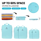 【Selected High Quality Materials】The compression packing cube set is made of 210D Nylon three-part fabric with PU waterproof coating, soft and lightweight, tear-resistant and extensible. With plated smooth zipper. High-end zipper head, easy to stretch and very durable. 【Good Production Process】All travel packing cubes are double stitched with reinforced seams to make them durable, Sturdy handle to provide heavyweight support, making it easier to carry.convenient to pack and unpack. 【Product Design Details 】This suitcase organizer bag set uses a double zip design to save space and keep everything organized. The additional airline compliant toiletries bag makes it secure and visible. The backpack bag used as a dirty laundry bag or shoe bag is suitable for short trips or outdoor activities. 【Match Your Luggage】Comes with 7 travel packing cubes for different kinds of luggage. You can place them any way you like. For example: 1X backpack bag for shoes or dirty clothes,1X Clear bag for toiletries, 1X large packing cubes for coat and sweater, 2X medium packing cubes for trousers and skirts, 2X small packing cubes for underwear socks and t-shirts. 【Suitable For Occasion】 Compressible packing cubes Ideal for family vacations, business trips, outdoor camping, and daily storage. Our brand believes in Let you pack and travel easily.