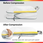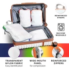 Innovative & Functional design] – Featuring packing cubes in different sizes PACKAGE : 6 SET PACKING CUBES WITH COLORS OF THE RAINBOW : 2 LARGE CUBE : 25.4 * 35.5 cm 2 MEDIUM CUBE : 17.8 * 25.4 cm 1 SMALL CUBE : 7.6 * 11.4 * 31.8 cm 1 DRAWSTRING BAG : 34.3 * 45.7 cm 6 COLORS packing cubes can store up to 3 times more clothes than competitors. Easy to care for. Simply wash and dry with our other laundry. 💼 2-Zipper Closure 💼 SPACIOUS & ORGANIZED SET WITH RAINBOW COLORS: This Extra Large Set includes 2 Large, 2 Medium, 1 Small, and 1 Drawstring Laundry Bag, all in a vibrant Rainbow color design. Perfect for organized packing, the Large cubes can hold a week’s worth of shirts or bulkier items like a rain jacket, hoodie, and cardigan. Medium cubes are ideal for essentials like Shorts and T-shirts. The small cube is perfect for underwear, socks, and smaller items. The laundry bag is great for keeping dirty clothes or shoes separate. This set is designed to maximize space and simplify packing! 💼 PACKING CUBES MAKE TRAVEL EASIER & SAVE SPACE: Easily compress air out of your clothes with our expandable compression cubes, saving up to 30% more space in your luggage. Designed with a simple two-zipper system, these cubes eliminate extra bulk without the need for pumps or tools, allowing you to pack efficiently and avoid checked bag fees by using only a carry-on! 💼 Lightweight Travel Accessories - These Rainbow compression packing cubes have Super light fabric that ensures packing your clothes neatly in luggage without adding extra weight. Great for when you want to minimize weight as much as possible and save space within your suitcase. 💼 ULTRA-DURABLE & WATER-RESISTANT MATERIAL: Made from tough 210D ripstop polyurethane fabric, our packing cubes are built to withstand nonstop travel. Lighter and more durable than nylon, they resist water, dirt, and grime, keeping your clothes protected. Reinforced double-stitched zippers ensure lasting compression, while the different color on each bag helps you organize efficiently. These travel essentials are rigorously tested for durability, making them a high-quality, reliable addition to your luggage setup.