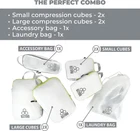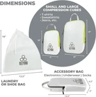 Menu Other Items Feedbacks About Us Contact Us Add To Favorites Compression Packing Cubes for Travel - Packing Cubes and Travel Organizers (6 Piece, Green and White) EASY TO USE - Compression packing cubes are essentially ultralight bags for your clothes that suck the air out and compress to about half their size thanks to a revolutionary dual-zip system. The top zip closes the bag, and the compression zip pushes the air out and compresses your clothes by as much as 50% without any equipment (unlike vacuum bags). Compression is fast and effortless. ORGANIZE YOUR LUGGAGE - Your compression packing cubes will make you a packing pro—no more mess in your suitcase or backpack. Packing cubes can: act as drawers in your closet; allow you to separate dirty clothes from clean ones; pack for each family member; and much more. DURABLE & BUILT FOR CONTINUOUS TRAVEL - The cubes are made from premium durable, lightweight nylon, built for continuous use in hot, cold, and even wet environments. The material is translucent (partial see-through) so that you can easily see what’s inside. The packing cubes are also super light, so they don’t take any more weight in your luggage. HOW MUCH CAN YOU PACK? One large cube: 3x t-shirts, 1x pants, and 1x sweatshirt. One small cube is ideal for 5 t-shirts and ideal for underwear items or 8 pairs of socks. The accessory bag can store cables and other items or a pair of flip-flops. The set includes 6 items: 2x large cube (14”x10”), 2x small cube (10”x7”), 1x accessory bag (12.5”x4.5”), 1x laundry bag (13.5”x18”). PERFECT FOR CARRY-ON - Whether you're embarking on a quick weekend getaway or an extended international adventure, these compression packing cubes are tailor-made for your carry-on luggage. This set effortlessly slots into your compact carry-on bag, but it's just as versatile for use in larger bags or smaller backpacks. Ideal for air travel, making airport security swaps a breeze, as well as for on-foot backpacking journeys, sports-related travel, car or train excursions, and much more. Product Description PRO TIP: Roll your clothes By rolling your clothes before you place them in the compression cube, you'll be able to maximize storage and minimize wrinkles. Here are a couple more ways you can use your packing cubes: Use them as drawers in your closet Separate dirty clothes from clean ones You can pack for each family member Use them extended or compressed PACKING REINVENTED What are compression packing cubes? Compression packing cubes are essentially ultralight bags for your clothes that suck the air out and compress to about half their size. The compression is natural, thanks to the dual zip system. No equipment is needed (unlike vacuum bags). Here are some of the main benefits of using Beeyond compression packing cubes: Compress clothes by 50% Save space in your bag or backpack Organize your luggage More room - pack more clothes Your clothes stay protected from getting dirty or damaged by other items in your bag The material is translucent (partial see-through) so that you can easily find things you’ve packed The set is designed to fit carry-on HOW IT WORKS? STEP 1: Place clothes inside Fold your clothes and place them inside the cube STEP 2: Zip the first zipper Close the first zipper to protect your clothes STEP 3: Zip the second zipper Close the second zipper and compress the air out - use your finger to guide the compression zip Voila :) Your compression packing cube is ready WHAT'S INSIDE THE PACKAGE The set includes 6 items (2x large cube, 2x small cube, 1x small bag, 1x laundry bag)—one big cube: 3x t-shirts, 1x pants, and 1x sweatshirt. The small cube is ideal for 5 t-shirts and is also ideal for underwear items (bras, boxers, etc.) or 8 pairs of socks. The additional small bag can be used to store cables for your phone, computer, or other items, or, for example, be used to pack two pairs of sandals. The laundry bag is great for dirty laundry or your shoes. WHO ARE COMPRESSION PACKING CUBES FOR? The cubes are made from premium durable, lightweight nylon, built for continuous use in hot, cold, and even wet environments. The set fits carry-on dimensions. Ideal for: Weekend travelers Family vacationers Business travelers Long international travels, month-long packing trips Sports travelers, outdoor/camping Daily storage SPECIFICATIONS & USE INSTRUCTIONS Package dimensions 14.5 x 10 x 2 inches Package weight 5.3 ounces Color/material White (partially translucent) nylon with grey and green zippers Set includes 6 items (2x large cube, 2x small cube, 1x small bag, 1x laundry bag) Washing Hand wash for best results Ironing Do not iron Use notice Do not overpack, or you won't be able to compress items and to avoid damage Zipper use Zip can get snagged with the nylon; use your finger to guide the compression zip Item Specification Closure Type Zipper Batteries Required? No Number of Items 6 Item Package Quantity 1 Color White & green (6 Pieces) Material Nylon Number of Sets 1 Item Weight 11.4 ounces Shape Cube Batteries Included? No Recommended Uses For Product Sports,Clothing Special Features Durable,Lightweight,See-through Size 6 Piece Special Feature Durable,Lightweight,See-through Product Dimensions 14.2"L x 9.8"W x 1.5"H Dimensions Shipping Returns Additional Info Product Dimensions: 9.8 "h x 14.2 "h x 1.5 "h. Weight: 11.4 oz Fast shipping is very important for us. Our standard shipping service is FREE. Your order will be shipped within 1-3 business days upon full payment received. Most items are delivered within 3-5 business days, however, please allow 3-10 business days. We are shipping only to USA. We only ship to the confirmed Paypal address. We reserve the right to cancel any order for any reason at any time. We are not responsible for undeliverable addresses. We offer a 30 day return policy from checkout winning date. Your satisfaction is guaranteed! If for any reason you are unhappy with your item, just return it within