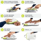 Compression Packing Cubes for Travel - Packing Cubes and Travel Organizers 6 Piece, Green and White EASY TO USE - Compression packing cubes are essentially ultralight bags for your clothes that suck the air out and compress to about half their size thanks to a revolutionary dual-zip system. The top zip closes the bag, and the compression zip pushes the air out and compresses your clothes by as much as 50% without any equipment (unlike vacuum bags). Compression is fast and effortless. ORGANIZE YOUR LUGGAGE - Your compression packing cubes will make you a packing pro—no more mess in your suitcase or backpack. Packing cubes can: act as drawers in your closet; allow you to separate dirty clothes from clean ones; pack for each family member; and much more. DURABLE & BUILT FOR CONTINUOUS TRAVEL - The cubes are made from premium durable, lightweight nylon, built for continuous use in hot, cold, and even wet environments. The material is translucent (partial see-through) so that you can easily see what’s inside. The packing cubes are also super light, so they don’t take any more weight in your luggage. HOW MUCH CAN YOU PACK? One large cube: 3x t-shirts, 1x pants, and 1x sweatshirt. One small cube is ideal for 5 t-shirts and ideal for underwear items or 8 pairs of socks. The accessory bag can store cables and other items or a pair of flip-flops. The set includes 6 items: 2x large cube (14”x10”), 2x small cube (10”x7”), 1x accessory bag (””), 1x laundry bag (”x18”). PERFECT FOR CARRY-ON - Whether you're embarking on a quick weekend getaway or an extended international adventure, these compression packing cubes are tailor-made for your carry-on luggage. This set effortlessly slots into your compact carry-on bag, but it's just as versatile for use in larger bags or smaller backpacks. Ideal for air travel, making airport security swaps a breeze, as well as for on-foot backpacking journeys, sports-related travel, car or train excursions, and much more.