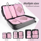 HOW TO COMPRESS:Extra zipper outside of our compression packing cubes which is in order to zipped up to flatten the cubes and save the space. You can fold your clothes and flatten them;put the clothes into the packing cubes and zip the normal zipper SAVE 30% SPACE:Our packing cubes feature sturdy metal, two-way zippers that can effortlessly glide, minimize jamming and snags. Meanwhile, compression zipper design for saving up to 30% storage space LIGHTWEIGHT AND STURDY SUITCASE ORGANIZER:These compression packing cubes are crafted with tear-resistant, nylon fabric and reinforced double-seams which can withstand stronger tension, and the breathable see-through mesh let you find more quickly PORTABLE TRAVEL ACCESSORIES:These travel packing organizers are perfect for your outgoing needs, whether you're going on vacation, hiking, camping. Our 5-set packing bags fit perfectly in 20 inch carry-on suitcase, or 24/28 inch checked luggage IMPROVE STORAGE EFFICIENCY:Organizing travel clothing by using our packing cubes to save time and space, keeps things organized, and reduces stress during travel that makes your journey convenience and enjoyable