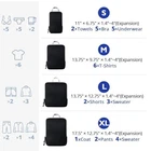 Compression Packing Cubes for Travel,Expandable Packing Organizers, Black Features: SAVE SPACE FOR YOUR LUGGAGE: The double-zipper of the VINOWO compression packing cubes works faultlessly in compressing clothes and helps save space in carry-on luggage or travel backpacks. Compression saves up to 60% of storage space, Keeps your clothing items organized and easy to access while traveling. PREMIUM FABRIC: These organizer bags sets use premium nylon fabric, the smooth & water-resistant nylon fabric protects your clothes from wrinkles and stains. Light but sturdy that makes sure this packing cubes can bear high density wear. HOW TO COMPRESS: The compression packing cube just works like a vacuum sealer. You just need to: 1) Unzip the compression zipper. 2) Put the clothes in the bag. 3) Zip up the compression zipper. 4) Let's go on a trip. SUITABLE FOR EVERY OCCASION: Different sizes packing cubes for different packing purposes. Separating your clothes, such as jackets, sweaters, underwears, socks into different packing cubes for easy access. Ideal for family vacations, business trips, outdoor camping, and daily storage. ITEMS INCLUDED: The 4 set of packing cubes includes One Xl (17.5"×12.75"×4"), One L Size (13.75"×12.75"×4"), One M Size (13.75"×9.75"×4"), One S Size (11"×6.75"×4"). SHIPPING We are always working hard to ensure your package arrives as soon as possible. Please understand that some factors like weather, high postal traffic, and the performance of shipping companies are outside of our control. We offer free shipping to the lower 48 states and ship within 3 business days of payment, usually sooner. We do not accept P.O. Boxes. Please provide a physical address.