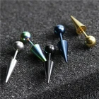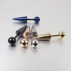Cone Stud Earrings round ball spike women man punk Titanium Steel cool style gold jewelry gift gothic stud earrings Description: Product name: ear studs Material: titanium steel Color: steel color, black, gold, color, blue Size: needle thickness 1.2mm, taper 4.8mm*11mm length, ball 5mm Weight: about 4g Specifications: 1.【Alloy Material】Selected high-quality alloy material, fine workmanship. 2. [Electroplating process] The use of electroplating adds luster and attracts attention. 3. [Fashionable Appearance] Simple design, full of European and American fashion sense. 4.【Various styles】The sharp cone shape, unique creativity, suitable for all kinds of people. 5. [Multi-scene use] It can be used as a fashion matching item whether it is going out for shopping or dating Package Included: Earrings*1 pair