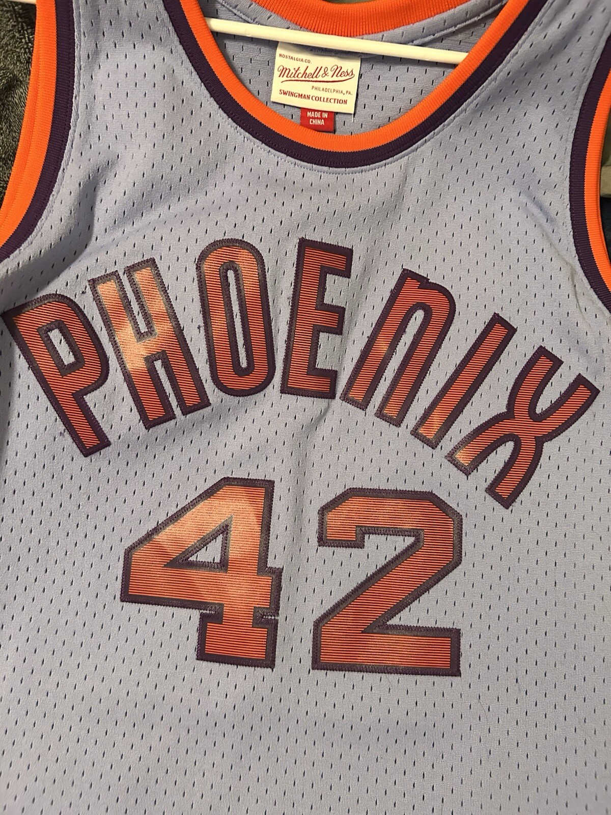 Connie Hawkins Phoenix Suns Mitchell And Ness Throwback Jersey “space” Edition L I bought this a few years ago. It’s clean and in good shape. Very light “purple” shading although it looks white in photos. It’s supposed to be space edition from M&N. Get it today!