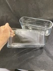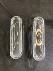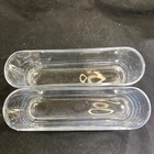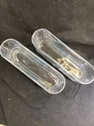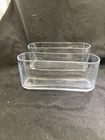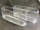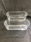 Elevate your home decor with this set of two contemporary oval vases perfect for displaying your favorite flowers. Made of clear glass and unmarked, these vases are an original and stylish addition to any room. Measuring 9.5 inches in length, 4 inches in height, and 2.75 inches in width, these vases provide ample space for beautiful arrangements. With a theme of flowers and a style that is both contemporary and handmade, these vases are sure to catch the eye of any visitor. Whether you're an antique collector or a lover of all things modern, this set of vases is perfect for adding a touch of sophistication to your home.