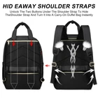 Convertible Design: Waterproof bagpack is designed with hideaway padded shoulder straps which can be easily stored away in zippered back panel, transforming this vacation backpack from carry-on duffel to briefcase style and provide you a more flexible carrying experience. Comfortable and Large Handle:Ergonomic design with thick but soft multi-panel ventilated padding, gives you maximum back support, so you don't have to worry about fatigue caused by long-term travel. The design of the large handle is more convenient for you to carry the bag quickly. Convenient for Travel: An anti-theft pocket located on the back keeps your passport, wallet, phone, and other valuable items safe and handy. A luggage strap allows backpack fit on luggage/suitcase, making your journey and travelling more convenient wherever you go. Laptop Protection Design: The laptop compartment has thickened foam padding, which can play a good buffering and protective effect on the laptop. There is a shock-resistant strap inside that can be used to secure the laptop, preventing the laptop from sliding and bumping. Elegance Meets Functionality:This womens laptop backpack features exquisite black embroidery.The luggage backpack is light to carry due to its adjustable "S" shoulder straps.