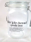 COOKIE GLASS JARS Set of two glass jars with lids that close with metal clasps. One reads COOKIE FOR SANTA and the other GINGER BREAD. These jars are 8" tall and 4.5" wide -set of 2 as shown, NEW