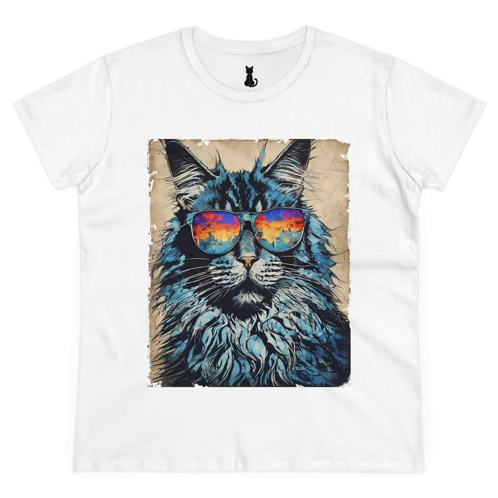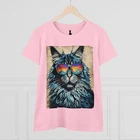 Introducing the perfect Women’s Midweight Cotton Tee, designed to bring a pop of personality to your wardrobe! Featuring a vibrant and artistic cat graphic with stylish sunglasses, this tee is not only a statement piece but also provides a comfy and relaxed fit. The soft cotton fabric feels gentle against the skin, making it ideal for everyday wear or a casual outing with friends. Perfect for cat lovers and art enthusiasts, this tee fits seamlessly into your casual lifestyle, whether you’re lounging at home or enjoying a day out. Great for birthdays, holidays, or just because, it’s a fun way to express your love for feline friends! Product features - Made from solid 100% cotton for all-day comfort - Durable double needle sleeve and bottom hems - Designed with side seams for structure and longevity - Neck and shoulder tape for added stability - Semi-fitted style with a tear-away label for comfort Care instructions - Machine wash: cold (max 30C or 90F) - Do not bleach - Tumble dry: low heat - Iron, steam or dry: low heat - Do not dryclean EU representative : HONSON VENTURES LIMITED, 3, Gnaftis House flat 102, Limassol, Mesa Geitonia, 4003, CY Product information : Gildan 5000L, 2 year warranty in EU and Northern Ireland as per Directive 1999/44/EC Care instructions : Machine wash: cold (max 30C or 90F), Do not bleach, Tumble dry: low heat, Iron, steam or dry: low heat, Do not dryclean