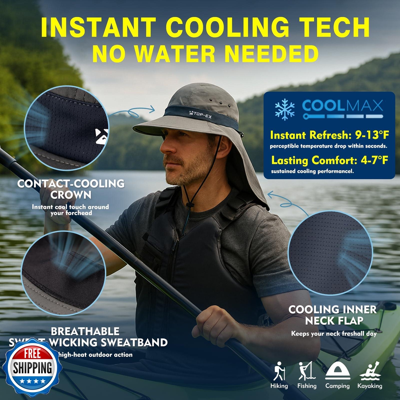 TOP-EX Cooling UV Sun Hat for Large Heads Wide Brim Bucket Hat with Neck Flap Outdoor Fishing Hiking Golf Cap for Men and Women Summer Navy L/XL Features 【TOP-EX Instant Cooling Tech – No Water Needed】 Engineered for high-heat performance, this hat uses exclusive contact-cooling fabric in the sweatband, crown, and inner neck flap to deliver instant coolness—no water needed. The wide brim and full neck flap provide sun coverage while the breathable, sweat-wicking build keeps you dry. Ideal for hiking, fishing, beach walks, and long days outdoors. 【UPF 50+ Wide Brim & Neck Flap Protection】 With a 3.1" brim and 9.4" neck flap, this hat blocks 98% of UVA/UVB rays to protect your face, ears, and neck. Certified UPF 50+, it’s the ultimate sun defense for outdoor use—perfect for gardening, camping, boating, and travel. 【Rollable Brim That Holds Its Shape】 The soft-structured yet supportive brim is wind-ready and won’t flop. Our TOP-EX floating brim design adds structure and bounce-back recovery. Fold it flat, bend it inward, or roll it on the go—it’s packable, portable, and made for travel without losing its shape. 【Ventilated, Lightweight & Built for Movement】 Six mesh eyelets maximize airflow, and the moisture-wicking lining keeps you dry in heat. Lightweight yet durable, this hat stays put with an adjustable chin strap—great for outdoor work, hiking trails, or mowing the lawn. 【Sized for Every Head – Small or Oversized】 Unlike one-size-fits-all sun hats, TOP-EX offers 3 precision sizes for comfort and stability: M/L – 7 1/8–7 3/8 (22.4"–23.2"/57–59 cm) L/XL – 7 1/2–7 5/8 (23.6"–24.4"/60–62 cm) XL/XXL – 7 3/4–8 (24.8"–25.6"/63–65 cm). Each hat features an adjustable elastic drawcord at the back for fine-tuning fit. Whether your head is small or large, enjoy breathable, tailored sun protection built for real outdoor use. Shipping Free & Fast Shipping: We offer free shipping to most of the USA with a normal delivery time of 3-7 days. However, due to the current situation, additional delivery time (up to 3 weeks) may be required for some items. Alternative Carriers: We may use alternative carriers (e.g., USPS, FedEx, UPS) to ensure your package arrives safely and on time. Due to the use of multiple carriers, we are unable to provide a tracking number automatically. Handling Time: Orders are processed and shipped within 1-2 business days of receiving cleared payment. Shipping Restrictions: Shipping to Alaska, Hawaii, Puerto Rico, Guam, and other US territories may incur shipping charges or delivery restrictions. Please contact us before ordering, or your order can be refunded/cancelled. State Restrictions: Certain items may not be shipped to California due to state regulations. Contact for Tracking Updates: If you require tracking updates or have any concerns about the delivery of your order, please feel free to contact us, and we will be happy to assist you. Return Policy 30-Day Hassle-Free Returns: If you are not completely satisfied with your purchase, you can return the item for free within 30 days of receiving it for a full refund or exchange. Easy Return Process: Contact us, and we will provide you with a prepaid return shipping label and detailed instructions. No Restocking Fee: There are no restocking fees for returns. However, the buyer is responsible for return shipping costs if the return is not due to a seller's error. Refund Processing: Refunds will be processed within 1 business day of receiving the returned item in its original condition. Feedback Your feedback is extremely important to us. We strive to provide the best products and customer service possible. If you are satisfied with your purchase, please take a moment to leave us a positive review. If you have any concerns or issues with your order, please contact us before leaving negative feedback. We are committed to resolving any problems and ensuring your satisfaction. Contact Us If you have any questions or concerns, please feel free to reach out to our customer support team. You can contact us through the eBay messaging system. We are available Monday to Friday, 9:00 am to 5:00 pm EST, and we will do our best to respond to your inquiry within 24 hours. Thank you for supporting our small family business!