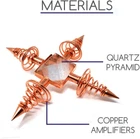 Made from highly conductive copper metal. As a conductor of energy, it is said to enhance crystal properties, help to repair tissues, oxygenate the blood, ease arthritis, strengthening the reproductive system and increase vitality. NOTE: Copper is a very soft metal, so the other small parts are made from other stronger metals that are copper plated.*** *** Quartz pyramid center focuses healing energy and is believed to help memory and concentration. Place 1 or more generators in a space to create a flow of positive energy and good vibes. NOTE: This is a natural product. Stone size, coloring, clarity and sizing are unique to each piece. Inclusions and imperfections make each piece unique. For the housing, the main metal material is copper. Balancing chakras for mind and body - Placing the generator over the seven chakras of the body helps to heal imbalances and energy blockages in your chakras. Improve your meditation and relaxation by helping the flow of Chi through your body. Ghost hunting and communicating with spirit realm - Generators can help to connect with invisible spiritual energy around us including ghosts and other entities. Feel the vibrations of the unseen and sense paranormal activity. So Many Uses - Spiritual clensing, Physical Healing, Enhancing your intuition, Balancing chakras, Ghost Hunting, Spreading joy and light Product Description Copper Coils Copper is a highly energy conductive element of earth that can be used to straighten the energies of crystals or shield a person from electromagnetic pollution. It is the ideal material to conduct spiritual energy back and forth between individuals and amplify thoughts when sending and receiving psychic communications. Quartz Pyramid The center healing pyramid is made from quartz, the “master healer” crystal. It is believed to store, regulate and release energy for aiding concentration and memory. The pointed pyramid shape focuses energy for healing, intent and manifesting desires. Spiritual Healing The crystal combined with the copper coils the energy is amplified providing maximum positive energy, prosperity, harmony, peace and good luck.The generator can be used to focus healing energy into the body to unblock a person's chi (energy). Place one or multiple generators on each chakra or desired area. It can also be placed under your healing table. Good Vibes Placing generators in the corners of a room can promote the positive flow of energy for protection and energizing of the space.