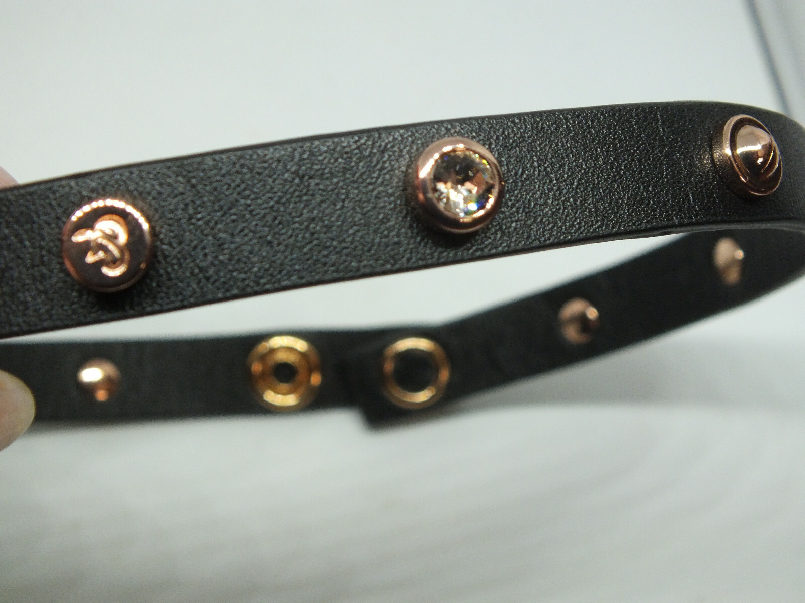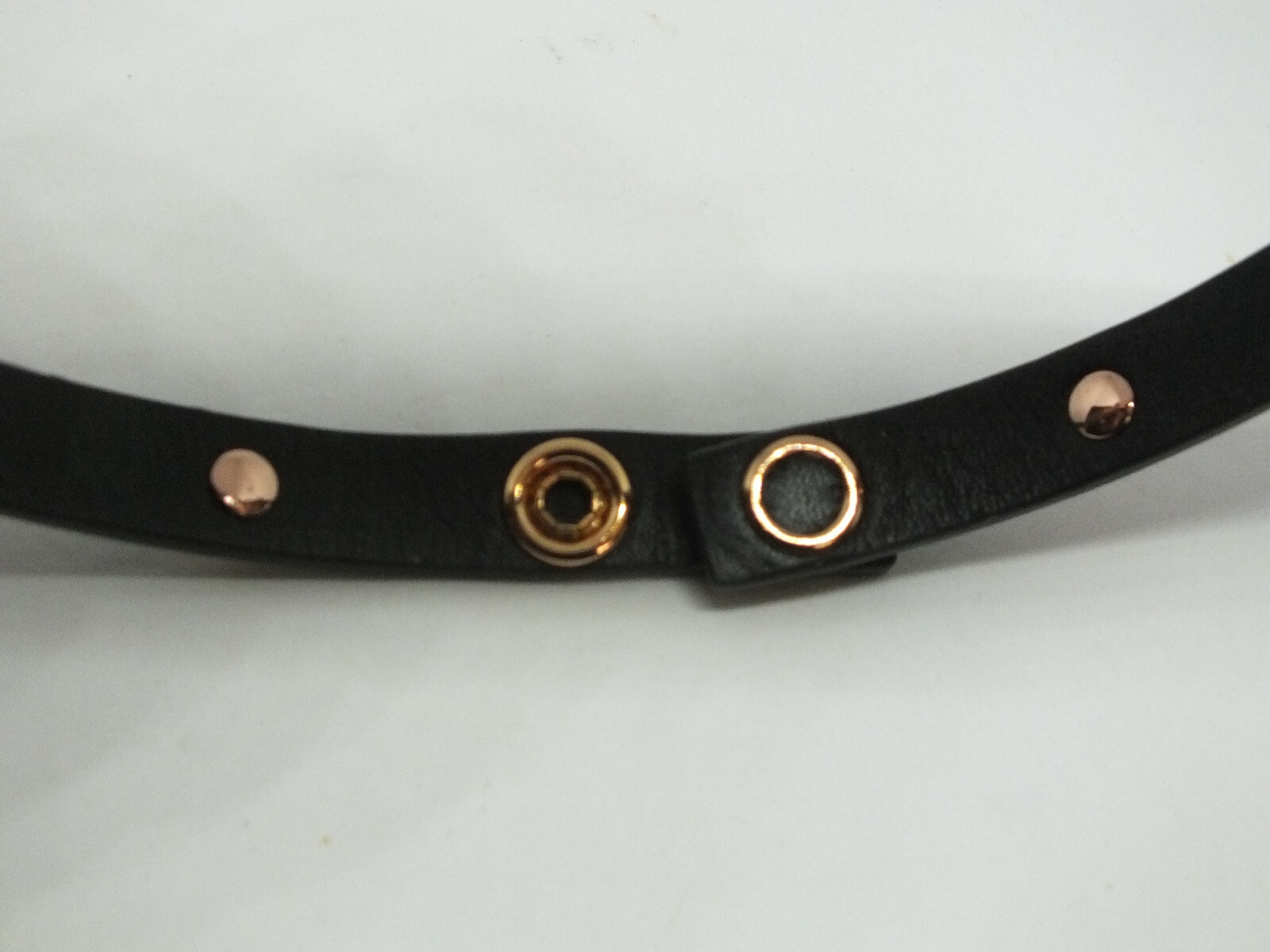 For your consideration is a beautiful necklace choker done in a black faux leather with coppery gold studs with sparkling clear rhinestones measuring 1/2 inch wide by 14 & 14 1/2 inches long with a double snap closure. Great addition to your jewelry wardrobe. Very good gently used condition. Comes with a gift box. Picture does not do justice. Thanks for looking! FREE shipping to the United States. Discounted shipping rates for International buyers purchasing multiple items. KEEP watching-I am always adding linens and have hundreds of pieces of jewelry I am trying to get listed.