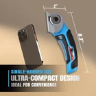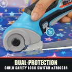 Electric Scissors, Cordless 4V Ah High-Capacity Rechargeable Cardboard Cutter with Rapid Charger and Hard Carrying Case for Cutting Fabric, Carpet, Leather, Felt, Cardboard, Plastic Cutting Powerhouse: Our electric rotary cutter boasts a 240 RPM cutting speed and a 1/4” cutting capacity, making it stronger and more efficient than manual scissors. Say goodbye to hand strain and effortlessly tackle materials like cardboard, leather, plastic mats, and carpets Always Sharp Blades: Equipped with an automatic sharpening system, our cutter ensures precision and smoothness with every cut. The blades remain sharp, SATISFACTION GUARANTEEing consistent performance and longevity Long-lasting Battery: Powered by a high-spec 2500 mAh Lithium-Ion battery, our cutter holds a charge for s, ready to tackle any project without interruption. It completes a full charge within just hrs then enjoy 1 hour of continuous runtime without the hassle of frequent recharging Safety and Convenience: With a safety lock-off switch, our electric scissors prioritize your safety. The ergonomic design allows for comfortable handling, whether you're left-handed or right-handed, while the lightweight construction minimizes fatigue during extended use Versatile and Reliable: From cardboard to carpet, our cordless electric scissors effortlessly cut through a variety of materials, making them an indispensable tool for crafters, DIY enthusiasts, and households alike. Plus, with our 12- satisfaction and dedicated customer service, you can trust in the quality and reliability of our product Introducing 4v cordless electric mini cutter, the ultimate solution for effortless cutting of a wide range of materials with minimal hand strain. Say goodbye to the fatigue caused by manual scissors and embrace the ease and convenience of this mini cutter.Designed to tackle tough tasks like plastic packaging and cardboard, this electric scissors makes everyday cutting jobs a breeze. With its versatile functionality, lightweight design, and user-friendly operation, it's the perfect companion for your crafting and DIY projects.Featuring a built-in self-sharpening blade, it ensures precise and efficient cuts every time. Whether you're working with paper, leather, carpet, or more, this cutter delivers consistent results with a 1/4 inch cutting capacity can handle a variety of materials, making it suitable for a wide range of applications. Its ergonomic design, complete with a safety lock-off and on/off switch, ensures safe and comfortable use for all it isn't just about functionality—it's also about durability and convenience. With its long-lasting battery and compact design, it's ready to go whenever you need it, whether indoors or outdoors. Plus, with the included rapid charger, keeping it powered up is a breeze.Experience the power and precision of this cordless electric mini cutter. Give your hands a break and make cutting tasks easier and more enjoyable than ever package includes:Bare ToolRapid Charger BladeHard Carrying CaseUser Manual