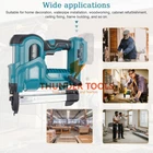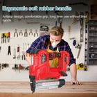 This nailing machine is easy to use, support both straight nails and n-shape nails, improve the flexibility of the use of the machine, improve work efficiency. High-power copper wire motor, with surging power and strong penetration, fast continuous nailing, and long motor lifespan. High-strength alloy nozzle and nail cartridge, spring snap positioning, installation/fixing/nailing one machine control, improve operating efficiency. Suitable for home decoration, waterpipe installation, woodworking, cabinet refurbishment, ceiling fixing, frame building, and so on. Features: Convenient to carry, support both straight nails and n-shape nails, improve the flexibility of the use of the machine, improve work efficiency. High-power copper wire motor, with surging power and strong penetration, fast continuous nailing, long motor lifespan, not easy to burn the machine. High-strength alloy nozzle and nail cartridge, spring snap positioning, installation/fixing/nailing one machine control, improve operating efficiency. Wireless design with strong penetration, one button out of the nail, easy to drive nails, not stuck nails, hit the nail completely, easy to penetrate a variety of hardwood. Ergonomic soft rubber handle, antislip design, comfortable grip, long time use without tired hands. With LED light, you can work normally even in dim or dusty areas, improving your work efficiency. Wide applications, suitable for home decoration, waterpipe installation, woodworking, cabinet refurbishment, ceiling fixing, frame building, and so on. Specifications: Name: Electric Nailing Machine Material: plastics+metal Color: red, blue (optional) Package size: 297 * 282 * 86mm / 11.69 * 11.10 * 3.39in Package weight: 2970g / 6.55lb Packing List: 1 * Electric Nailing Machine 200 * 32mm Nails 200 * 50mm Nails