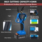 Electric pruning shears, Cordless Power Branch Cutter Fruit Tree Pruner MAX 1.65" Cutting Capacity, Battery Operated Pruning Shears 【VERY SHARP & STRONG POWER】The professional cordless pruning shears’ blade is forged from SK5 high carbon steel and powered by brushless motor. It is extremely sharp and durable, making it easy to cut 1.65inch / 40mm hard branches. Also its service life is 3 to 5 times that of a conventional brush motor. 【HELPER FOR ARTHRITIS & LIGHTWEIGHT】The body weight of about 2 lb /900g, battery weight 0.77 lb /350g, shockproof and anti-slip, ergonomic design, you will not feel tired after long time using. Compact and lightweight design, especially suitable for pruning lovers and workers, make it easy to trim and enjoy the trimming process effortlessly. Good helper for arthritis hands. 【LARGE CAPACITY BATTERY & CORDLESS DESIGN】 This electric pruning shears has 2pcs 2Ah large-capacity rechargeable battery, which can last 8-10 hours of working time. Cordless design allows you to bid farewell to bulky old-fashioned electric branch scissors and widen work range. Make trimming a pleasure work. 【QUICK TRIMMING & NO DAMAGE TO THE BRANCHES】 The electric pruner can cut branches with a maximum diameter of 1.65 inch (42mm) and has a strong bite force. The SK5 special steel blade design makes the pruning fast, neat and flat, and does not hurt the branches, and to avoid lesions and rotting caused by an uneven cut or tearing of the cutting site. It is very suitable for potted plants, fruit trees, flowers, vines, etc. [ERGONOMIC ANTI-SLIP GRIP] Ergonomically engineered anti-slip cushioned long handle grip hand electric pruners, and the grip’s design balances the weight, keeping the user firmly in control. Pruning shears fit small to large hands can helps reduce repetitive hand motion injuries hand fatigue wrist strain - ideal versatile battery powered pruners for general yard farm work multi - purpose intensive pruning arthritis sufferers carpal tunnel seniors with weak hands.