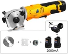Product model: D970701 Product name: Rechargeable round electric scissors Battery voltage: 16.8V Battery capacity: 2.0Ah Charging time: about 150 minutes No-load speed: 880r / min Operation mode: safety switch and start switch Cutting thickness: ≤25mm Blade size: 70MM Product net weight: 0.8KG Scope of application: suitable for fiber cotton, cotton, silk, synthetic fiber, leather, cloth, etc. Precautions Do not touch the blade with your hands or other parts of your body Never block the exhaust vent. [Large capacity lithium battery]: This cordless rotary cutter comes with one 2000mAh lithium battery. Surging power provides continuous power output and improves work efficiency. Fast charging is about 150 minutes. When fully charged, the charging indicator turns from red to green. [Sharpening function]: This electric rotary cutter comes with the sharpening function. When the cutting fabric has burrs and the blade is not sharp enough, press the sharpener lightly for 1-3 seconds, it will start to sharpen the knife automatically. [Safety protection switch design]: This electric cardboard cutter has double protection of the switch, prevent accidental opening. Press and hold the start switch and safety lock switch to start. [High speed steel blade]: This electric cordless scissor comes with 2 HSS high speed steel blades, the blades are finely ground, sharp and wear-resistant. [Parameters]: Battery voltage: 16.8V Blade size: 70mm Cutting thickness≤2.5cm Weight: 0.79kg [Wide application]: This box cutter is suitable for cutting a variety of materials, such as clothes, carpet, foot pad, leather, cardboard. It is a convenient tool for home or industrial use.