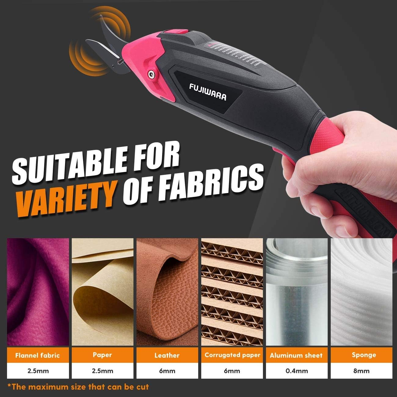 Store New Arrivals Add to Favorite View Feedback Contact Electric Scissors, 1 Rechargeable Lithium Battery and 2 Cutter Blades, Cordless Shears Cutting Tool for Fabrics/Canvas/Carpets/Leather/Cardboard/Other Thin Materials Red Description Unit Count 1 Count Style Classic Finish Brushed Number of Items 1 Blade Edge Straight Color Red Part Number F-E.Sciss-1 Material Stainless Steel Battery Cell Type Lithium-Nickel Manganese Cobalt (NMC) Hand Orientation Ambidextrous Item Weight 10.6 ounces Batteries 1 Lithium Ion batteries required. (included) Batteries Included? Yes Batteries Required? Yes Blade Material Stainless Steel Handle Material Leather,Textile Package Dimensions 10.35 x 4.09 x 2.17 inches Finish Type Brushed ◆【ATTENTION】: The blade is so sharp, you must pay attention to safety when using it, and avoid placing the product in a place where children can touch directly, It is forbidden to bring the electric product close to fire sources and high-temperature areas. The type of electric scissors is specially used for thin textile fabrics, other hard products and high thickness are not recommended to use regularly, which will reduce the service life of the cutter head ◆【LIGHTWEIGHT & EXQUISITE COMFORTABLE ENGONOMIC DESIGN】: FUJIWARA well-built lightweight and multifunctional electric scissors, the ergonomic shaped design ensure efficient cutting with less hand ache; Anti slip soft grip design makes the surface smooth; Heat sink design ensure the shears won't heat when using. ◆【MULTI PURPOSE & ELECTRIC SCISSORS】: Electric scissor with 2 different blades for cutting most kinds of materials: Fabrics, Canvas, Carpets, Leather, Cardboard, Garments, Textiles, Tarps, Paper, Wallpaper, Vinyl and other thin materials. It's also a good helper to crafter, seamstress, home DIY. This 1500mAh electric scissors offers a full 1-2 hours of usage. ◆【PACKAGE CONTENTS 】: 1 X electric scissor, 2 X high quality blades, 1 X charger cable, 1 X Non-removable built-in lithium battery can meet most of the cloth cutting in daily home projects. ◆【FUJIWARA ARE CONFIDENT WITH PRODUCTS QUALTY】: Any of your sincere feedback for FUJIWARA electric scissor are welcomed. If you have any questions, please contact with us, our technical team and after-sales team are always behind you. Product Description ABOUT US We offer the best prices around on high quality products. Our E-store includes media such as books, movies, music and games while offering electronics, toys, sporting apparel, clothing, tools, general home, garden items and more. SHIPPING We are always working hard to ensure your package arrives as soon as possible. Please understand that some factors like weather, high postal traffic, and the performance of shipping companies are outside of our control. We offer free shipping to the lower 48 states and ship within 2 business days of payment, usually sooner. We do not accept P.O. Boxes. Please provide a physical address. For shipping outside of the continental USA, we only use eBay's Global Shipping Program.The item is shipped to KY and then sent to the rest of the world. International customers are responsible for all duties and taxes. Continue to check out in order to calculate costs for shipping the item to your country. Messages regarding eBay's Global Shipping Program MUST be directed at eBay EXCLUSIVELY. RETURNS We offer a 30-Day Return Policy on items which you are not completely satisfied with. You have the option for a full-refund or an exchange of the item. No returns are available on items shipped outside of the USA. PAYMENT We accept PayPal. CONTACT US This page content is yet to come Please ad us to your favorite seller and visit again later Thank You CUSTOMER SATISFACTION We try our very best to make sure every customer is completely satisfied. If there's a problem, message us! We're happy to help. WE ACCEPT Copyright © 2021 AutoDS. | All Rights Reserved