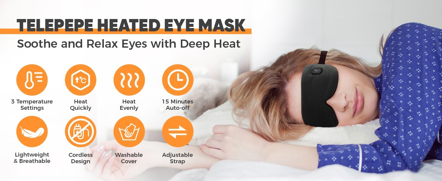 Heated Eye Mask for Dry Eyes, Cordless Warm Eye Compress, Styes, Blepharitis, 3 Temperature Settings, Washable, 1000mAh, Gifts for Friends (Grey) About this item [Cordless Design] Telepepe heated eye mask heats up quickly and provides soothing relief constantly for the discomfort of the eyes. It’s convenient to move freely without long cables and a power supply. [3 Temperature Settings] The warm eye compress was specially designed to have 3-class temperature settings (104℉-143℉). It will automatically stop working after 15 minutes. [Lightweight and Breathable] This dry eye heated mask is lightweight, evenly weighing 78 grams. Easy to put the mask in bags. The soft and breathable fabric can provide excellent light blocking. [Washable] The removable cover is washable if the eye mask gets dirty. This heated eye mask is fragrance-free. It is suitable for those who don't like fragrances. [Ideal Gifts] Telepepe heated eye mask is a good choice as a gift for your friends and family. It is not only practical, relieving eye fatigue