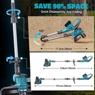 Product description Folding 3 in1 Weed Eater for Makita 18V Battery Adjustable height handles from to 50" to 60" The power display, allowing users to monitor remaining runtime. Features a brushless motor, which enhances efficiency, extends tool life. Note: It is not suitable for cutting larger-diameter shrubs or trees.