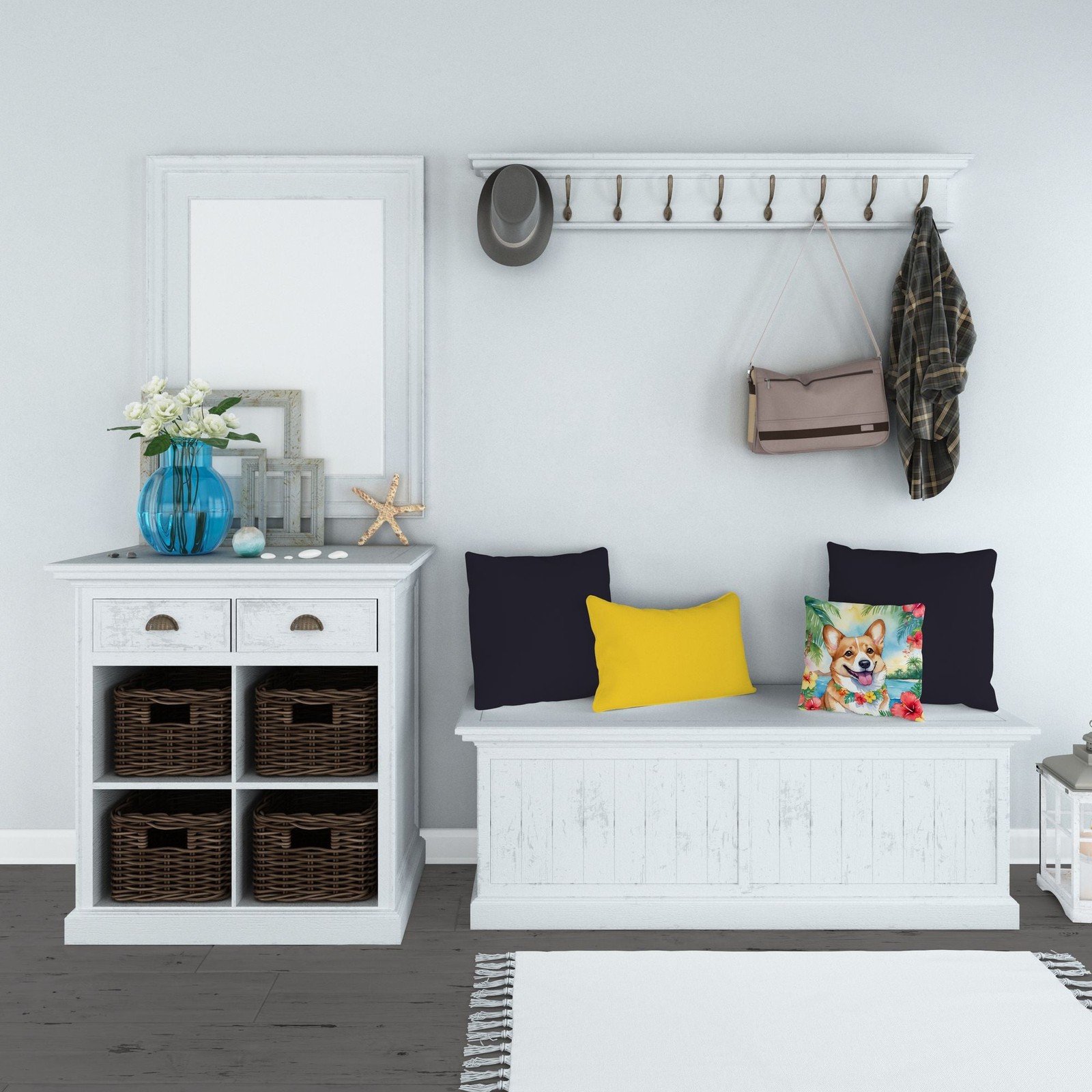 Corgi Luau Throw Pillow Machine Washable, Indoor Outdoor Decorative Pillow for