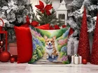 White Toy Poodle Christmas Throw Pillow Machine Washable, Indoor Outdoor