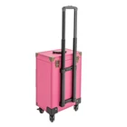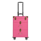 Cosmetics Rolling Cases Travel Makeup Rolling Organizer Nail Polish Storage Box Makeup Train Case, Rolling Makeup Trolley Case, Nail Polish Organizer, Jewelry Travel Cosmetic Train Case w/ 4 Wheels, Rose Description If you are troubled by storing all your hairdressing tools in order and finding them easily, our makeup train case can be of great help to you. Featuring high durability, attractive appearance, large capacity, universal wheels, humanized handles, a telescopic rod, and more, this product is easy to carry outside while keeping practical and beautiful. It is an ideal choice for young manicurists, make-up artists, and hairdressers/cosmetics lovers to store various cosmetics. Application It is good for manicurists, makeup artists, both beginner and professional, freelance makeup artists, wedding makeup artists, celebrity makeup artist, and cosmetic trainees. Specification Target Audience: Unisex Adult Caster Type: Swivel Mounting Type: Free Standing Material: PU, PVC, Zinc Alloy, Aluminum Alloy Color: Rose Shape: Rectangular Number of Tiers: 3 Number of Wheels: 4 Max. Load-bearing Capacity: 40kg/88.2lbs Number of Keys: 2 Lid Size: 36*23cm/14.2*9inch Wheel Height: 7cm/2.8inch Telescopic Rod Length (Min.): 38cm/14.9inch Telescopic Rod Length (Max.): 86cm/33.8inch Second Tier Inside Size: 30*19.5*13.5cm/11.8*7.7*5.3inch Each Compartment of Top Tier Size(L*W): 3.5*3.5cm/1.4*1.4inch Each Compartment of Third Tier Size: 14.5*19*13.5cm/5.7*7.5*5.3inch Top Tier Height: 9cm/3.5inch Second&Third Tier Height: 17cm/6.7inch Overall Case Body Size: 36*23*49cm/14.2*9*19.3inch Overall Product Size: 36*23*101cm/14.2*9*39.76inch Package Size: 63*32*41cm/ 24.8*12.6*16.14inch Gross Weight: 10kg/22.04 lbs Product Weight: 9kg/19.84 lbs Key Features Beautiful Appearance: Elegant Rose color combined with a rectangular frame, smooth lines, and delicate lychee texture gives this product a stylish and beautiful look. High-quality bronze hardware and exquisite stitching also add to its appearance. Durable and Sturdy: This product is constructed with premium PU, PVC, and reinforced corners, aluminum alloy rod, zinc alloy-wrapped edge , which is waterproof, wear-resistant , and has a long service life. Categorized Storage : The 3-tier and compartment designs, cubicles, and a large clear pocket on the lid give this case a large capacity to hold your daily cosmetics and makeup tools in a categorized way, allowing you to quickly find what you want. And the dividers are removable for organizing different sized bottles. Easy to Move&Carry: 4 universal wheels (2 of which are lockable) ensure that the case can be moved smoothly and silently in all directions and allow for safe fixation to handle different road conditions. The telescopic handle and top handle give it high portability. Easy to Clean: The lid and drawer designs can prevent dust from entering, along with the waterproof surface, making it easy to clean. You just need to wipe off the dirt with a wet cloth. High Safety: The 4 latch locks and waterproof surface provide maximum protection and security for your toiletries, giving you peace of mind while traveling. Excellent Load-bearing Capacity: The sturdy construction and the zinc alloy frame provide the product with an excellent weight-bearing capacity of 88.2 lbs. You can place all kinds of hairdressing and beauty tools in it with confidence. Protective Packaging: To prevent the product from being damaged and bumped during transportation, we pack it with pearl cotton for maximum protection of your products. After-sales Service : We aim to provide quality products and services. If you have any problems, please feel free to contact us, and we will reply and solv e the problem for you as soon as possible. Details Back Buckles: The back of the luggage has two hardware eight-nail back buckles to make the case more stable and to ensure that it remains as good as new when repeatedly opened and closed. User-friendly Drawer Handle: The 2 comfortable drawer handles of the second and third tiers allow for convenient closing/opening of the drawers, thus ensuring easy access to the inside items. Structure Overview The inside of the lid has a makeup bag where you can keep the things you use regularly for quick and easy access. The first tier can be used for nail varnish or other small items. The second tier is suitable for larger items such as hair dryers, curling wands, nail art machines, and more. The third tier has two compartments for medium items, such as cosmetics, hairspray spray. Package Included 1*Makeup Train Case 2*Keys Notes Please note that cosmetics or makeup tools are not included. This product is a carry case only. This product includes two keys. Please allow the slight color difference caused by the shooting light and 1-3 cm error due to manual measurement, and make sure you do not mind before ordering. Key Features Beautiful Appearance: Elegant rose color combined with a rectangular frame, smooth lines, and delicate lychee texture gives this product a stylish and beautiful look. High-quality bronze hardware and exquisite stitching also add to its appearance. Durable and Sturdy: This product is constructed with premium PU, PVC, and reinforced corners, aluminum alloy rod, zinc alloy-wrapped edge , which is waterproof, wear-resistant , and has a long service life. Categorized Storage : The 3-tier and compartment designs, cubicles, and a large clear pocket on the lid give this case a large capacity to hold your daily cosmetics and makeup tools in a categorized way, allowing you to quickly find what you want. And the dividers are removable for organizing different sized bottles. Easy to Move&Carry: 4 universal wheels (2 of which are lockable) ensure that the case can be moved smoothly and silently in all directions and allow for safe fixation to handle different road conditions. The telescopic handle and top handle give it high portability. Easy to Clean: The lid and drawer designs can prevent dust from ent