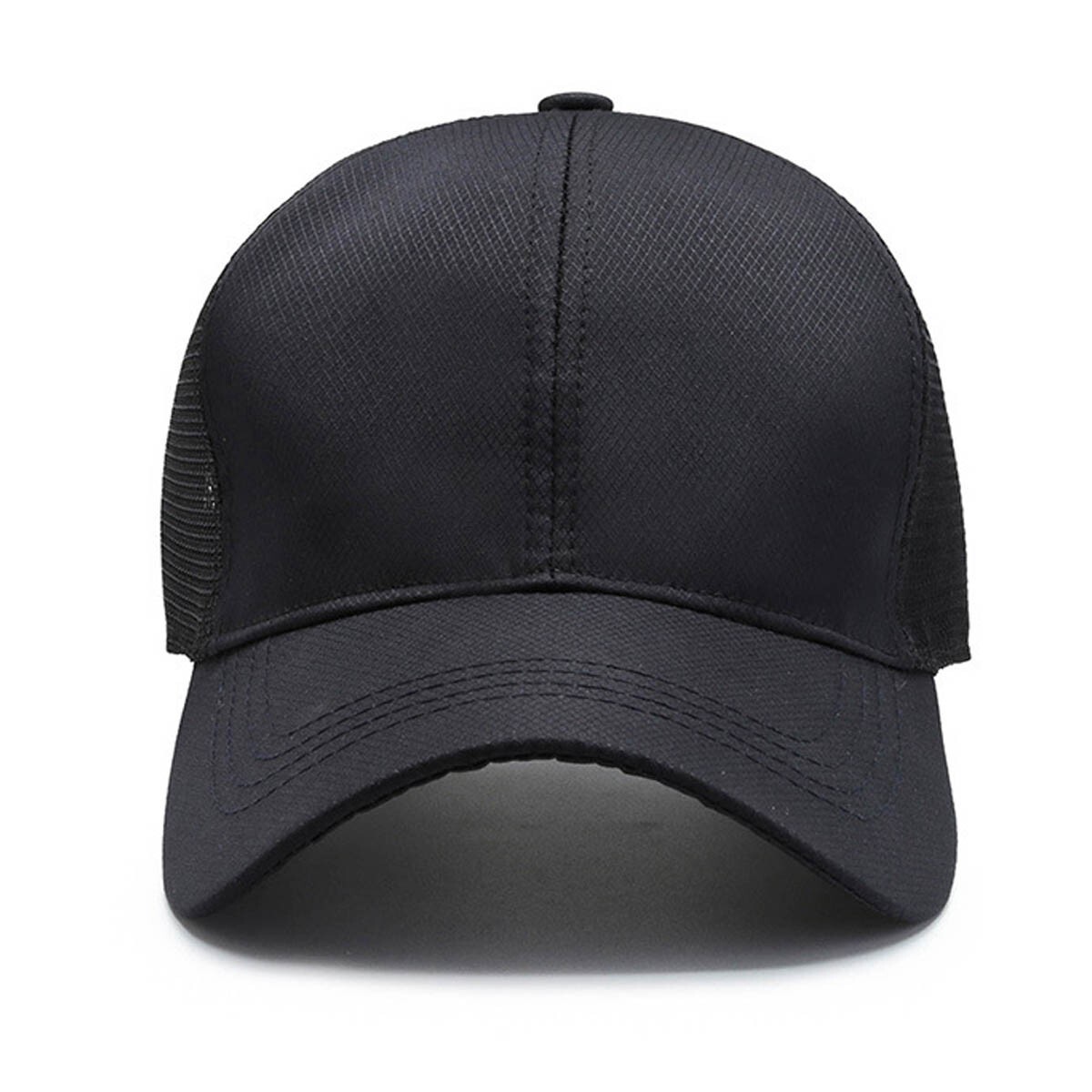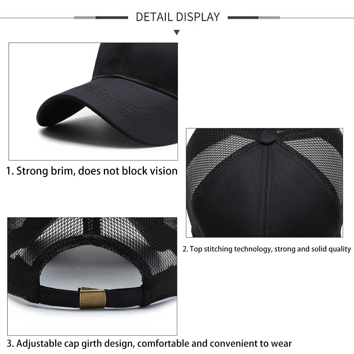 Describe: This plain baseball hat is made from high quality composite materials, stretchy, breathable and comfortable, Adjustable strapback, Structured crown , Medium-profile cap, Pre-curved flexible visor, Premium stretchy fabric. High quality ball caps are great for teams and company group construction, personalize your logo. Project details: Color: Black Type: Mesh Back Suitable head size: 22-23.62inch Material: Premium Cotton Twill Front Panels Features: Slight Pre-Curved Visor: The visor of a cap should complement you and your activities. From flat, to slightly pre-curved, to sandwich, there are various options for keeping your eyes shielded from the sun. Adjustable hat buckle: The last thing anyone wants during a small breeze is their headwear to go flying away with the wind. The fit and closure are pivotal to having confidence that your headwear isn't going anywhere during a small breeze. Pro Round Crown: The crown and overall shape is an important decision when picking a cap. Some headwear has low-profile crowns that are common with "dad-cap" style hats. Round and high crowns, on the other hand, are often found on popular trucker style caps. Package includes: Mesh hat x1 Located in: Flushing, New York, 11354 United States