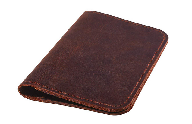 Cow Leather Passport Holder Wallet Bifold Card Pouch Ticket Bag Brown H263