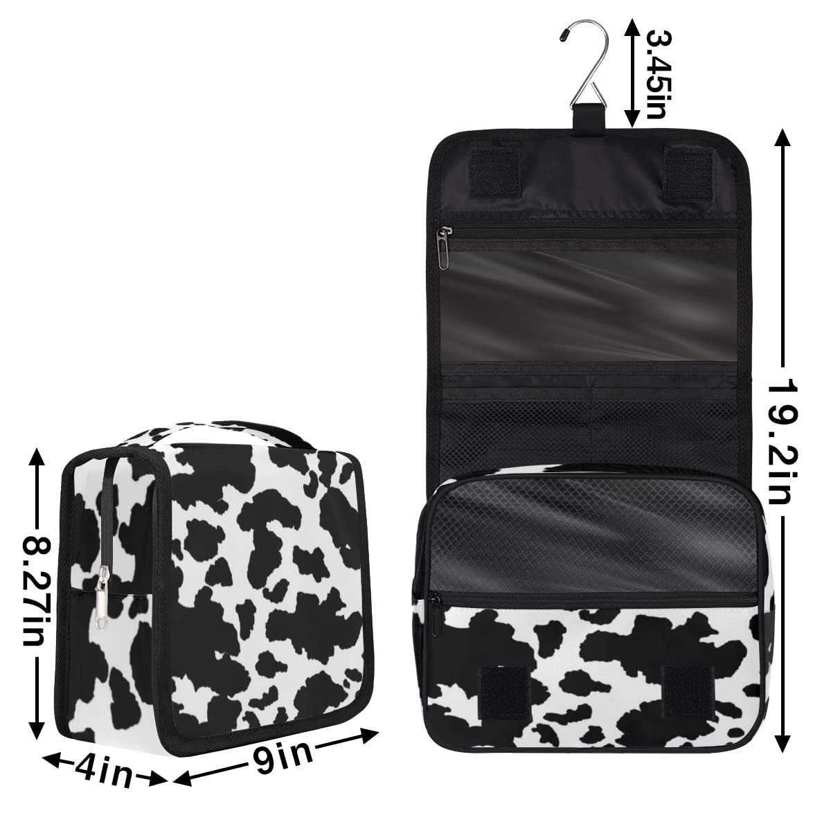 🏖️HIGH QUALITY: The material of cow print makeup bag is high quality Twill. A hard board in the bottom of cow print toiletry bag improves the shower bag’s load-bearing capacity greatly. The material is made of twill fabric, so you just need to use dry towel or paper towel to wipe the water when the travel toiletries bag is wet or dirty. 🏖️LARGE CAPACITY : The size of cow pattern hanging toiletry bag is 23*10*47cm/9*4*18.5 inch. When traveling/accommodating/business trip, this cow toiletry bag is your essential travel accessories. You can store your toiletries neatly in a wash bag, and no longer worry about losing items. 🏖️HOOK & ZIPPER: Travel toiletry bag for women equipped with non-slip metal hook which is hard to be broken, our travel makeup organizer lets you hang it on the bathroom door, shower rod or towel rack easily. Both the hook and the hand-held design allow you to save space during the journey and make it easy to carry. 🏖️MULTIPLE COMPARTMENTS: In the main pocket of the makeup bags cow print, you can store travel size toiletries and makeup. The zippered PVC pocket can store valuable and small items. The four internal compartment pockets can effectively classify and store daily necessities. As an important product of travel accessories, our products are sufficient to meet your needs. 🏖️EASY TO CARRY:Hanging toiletry bag for women can be hand-held or hung. You can take the lightweight travel toiletry bag with you at any time, ideal for travel, business trip, gym, cruise essentials,outdoor activities etc. It is an indispensable travel accessories for men's business travel and women's life. This toiletry bags is suitable for traveling women/man.
