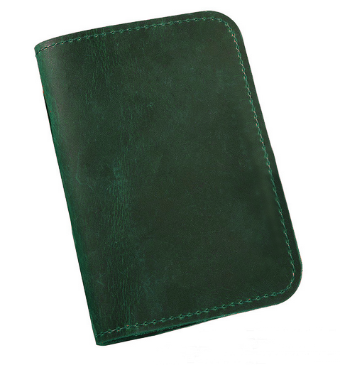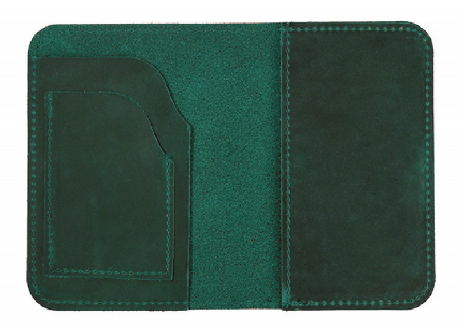 Cow leather bifold passport holder wallet with card slots - green H263