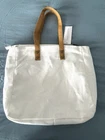 "COZY EARTH" WHITE CANVAS REUSABLE STORAGE TOTE! NEW WITH TAGS! SIZE: 14" W X 11" H X 3" D STRAP DROP 9" L This "Cozy Earth" tote storage bag is the perfect addition to your travel or casual outfits. Made of durable canvas material, this medium-sized rectangular bag features a solid pattern and a top zip closure. There is a nice sized slip pocket on the front, perfect to carry your cell phone and keys. The faux leather strap is brown and accented with brass buttons. The strap contrasts nicely with the white canvas. The "Cozy Earth" logo is sewn onto the front. The tote's interior is lined with wipeable nylon fabric and is white as well. This pretty canvas tote is part of the "Cozy Earth" product line and is eco-friendly, reusable, lightweight and packable. Great for travel! It is both a stylish and practical accessory. Thanks for looking! Clearing out my closet!!