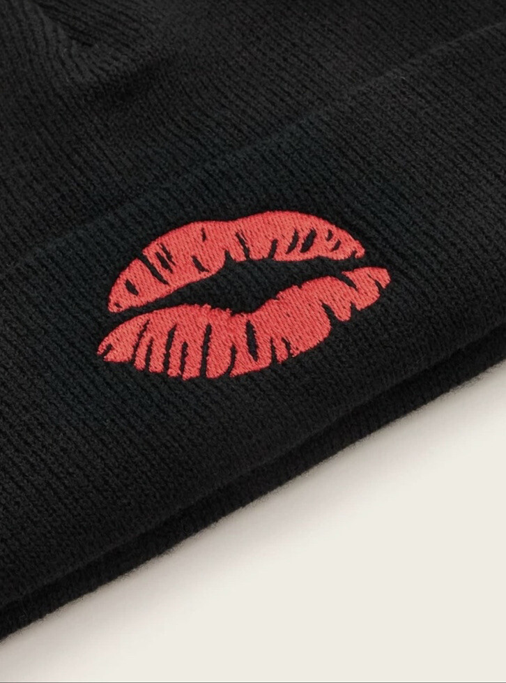 Black Beanie Hat. Lips Beanie Hat. Perfect for a chill day hanging out. Pair with high waste or boyfriend jeans