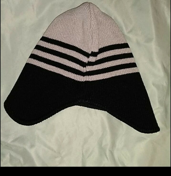 Beanie Black and gray double knit hat. Very warm. Has ear warmers. Gently used.