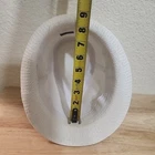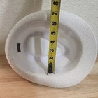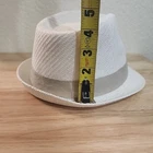 THERE IS A STAIN ON THE INNER BAND SHOWN IN PICTURES. Add a touch of sophistication to your summer and spring outfits with this stylish cream and tan fedora hat. Made of high-quality twill fabric, this hat is perfect for men in size S/M. The solid pattern and band feature add a timeless appeal to this fashionable accessory. Whether you're heading to a beach party or a casual brunch with friends, this fedora hat is a must-have in your wardrobe. Made in China, this hat is sure to make you stand out in the crowd with its unique style and cream and tan color combination. So, elevate your fashion game and add a chic touch to your outfits with this trendy fedora hat.
