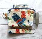 Nice size bag with a zipper closure to keep your items secure. T wo inner pockets to organize your essentials. Great to use everyday or when you travel. Comes with a matching coin purse and wristlet keychain to carry the purse or your keys handsfree. Lovingly crafted and made to be one-of-a-kind pieces that reflects your individual style. Excellent gift choice for friends, family, or yourself. NEW - Handmade Bag Measures: 14" W x 11" H x 3" D with a 13" zipper opening. Strap Drop: 13.5" Inner Pockets: 6.5" W x 6.5" H each. Coin Purse: 6 " L x 4.25 " H x 1" D with a 5" zipper opening. Wrist Keychain: 1" x 6" with a 5" opening. Each piece is made with a roosters and chickens print fabric. The straps and bottom of the bag is made with a blue chevron print fabric. Lined in a matching orange/red fabric. Padded with a cotton batting. All of the seams are back tacked, doubled stitched for strength. Top stitched below the zipper. Handmade by me in a pet free, smoke free home. Buy with confidence. Quality made. 100% Cotton Fabrics - Wipe with damp cloth or wash "cold" gentle cycle, tumble dry low. Press if needed. View my other items. They make great gifts! Thank you for supporting my small business. Thank you for buying handmade.