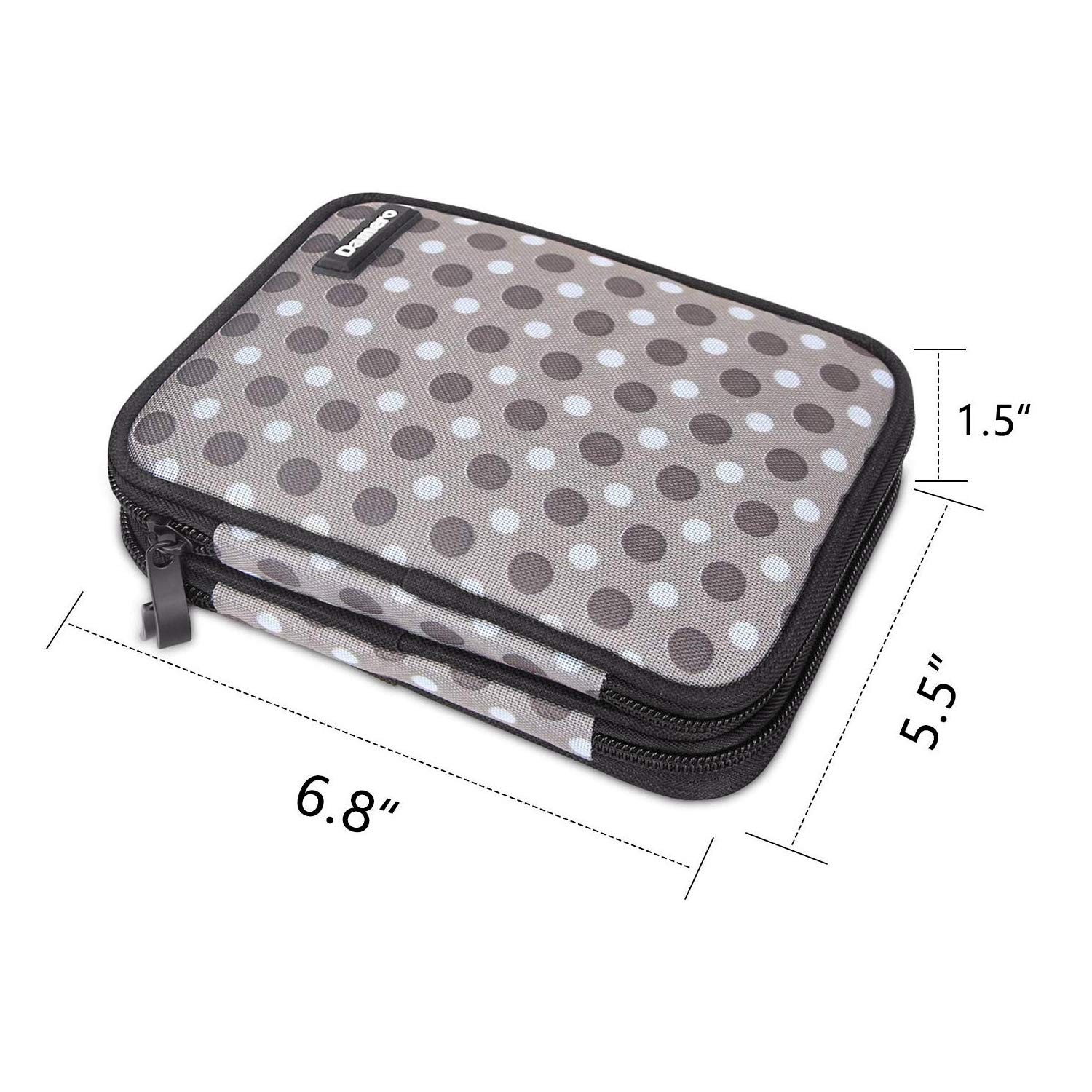 Crochet Hook Case, Organizer Zipper Bag with Web Pockets for Various Crochet Needles and Knitting Accessories, Well Made and Easy to Carry, Medium, Gray Dots (No Accessories Included) LARGE CAPACITY: This Crochet Hook Organizer Case can fit for ergonomic crochet hooks, aluminum crochet hooks, bamboo crochet hooks. COMPACT AND ORGANIZED: 3 mesh pouch could hold your accessories, like stitch marker, tape, yarn labels, scissors, knitting gauge, etc. SMART DESIGN: Top flap and bottom slots prevent different crochet hooks from falling out. PREMIUM QUALITY: The crochet case is made of premium nylon material. Well inner padded semi-flexible cushion offers excellent protection for your crochet hooks and accessories. EASY TO CARRY: Box design will not take up too much space in your backpack or purse. Perfect for travelling or crocheting everywhere, like the airport, a park, home or work.
