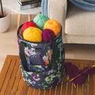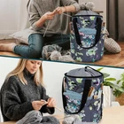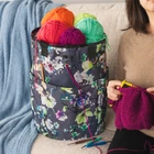 CROCHET BAG KNITTING BAG: Large crochet bag yarn holder for women and knitters to keep all knitting needle kits, crochet accessories, yarn balls, hooks, yarn rolls, and knitting essentials in one portable on the go tote. Whether you're at home, or traveling, this crochet bag organizer caddy case is designed to amplify your knitting and crocheting experience. Knitting tote bag measures Measures 12 x 12 x 16 inches (L x W x H). CROCHET BAG ORGANIZER: Crochet yarn holder bag is a large capacity crochet organizer and storage that holds up to 24 x 7 oz yarn or 10-12 skeins of yarn. Spacious round crochet bag features a large interior with 6 pockets, offering convenient storage for yarn rolls, wool, fabric, and crafting supplies. Exterior pockets are ideal to store knitting needles, hooks, scissors, stitch markers, measuring tape, unfinished projects, and accessory storage.. YARN HOLDER STORAGE WITH GROMMETS: Large capacity yarn bag with top drawstring opening is ideal for quick access and easy clean up. Special design with 6 yarn hole grommets to keep your yarn tangle free. Grommet holes help to guide yarn, ensuring that it flows smoothly without any entanglements or knots. In addition, velcro tapes help keep yarn in place without falling back into the bag. GIFT FOR CROCHET LOVERS: Gift for people who love crocheting and knitting gift for knitters.Versatile gift for crafters and perfect present basket for holidays, birthdays, Mother's day, or Christmas. It is an ideal gift for avid knitters, beginners, experienced, crafters, grandmas, and crocheters catering to their storage crafting needs. Surprise your loved ones with this thoughtful gift, allowing them to carry their crafting essentials with ease and style suitable for both women and men. CROCHET BAGS AND TOTES: Measures 12 x 12 x 16 inches (L x W x H) and is constructed with durable oxford polyester. Elevate your knitting and crocheting experience with our crochet organizer basket tote bag. Keep your crafting essentials in one place with this cute stylish travel knitting bag, a crocheting must have essential for knitters, crocheter, crafter, and knit lover, and women.